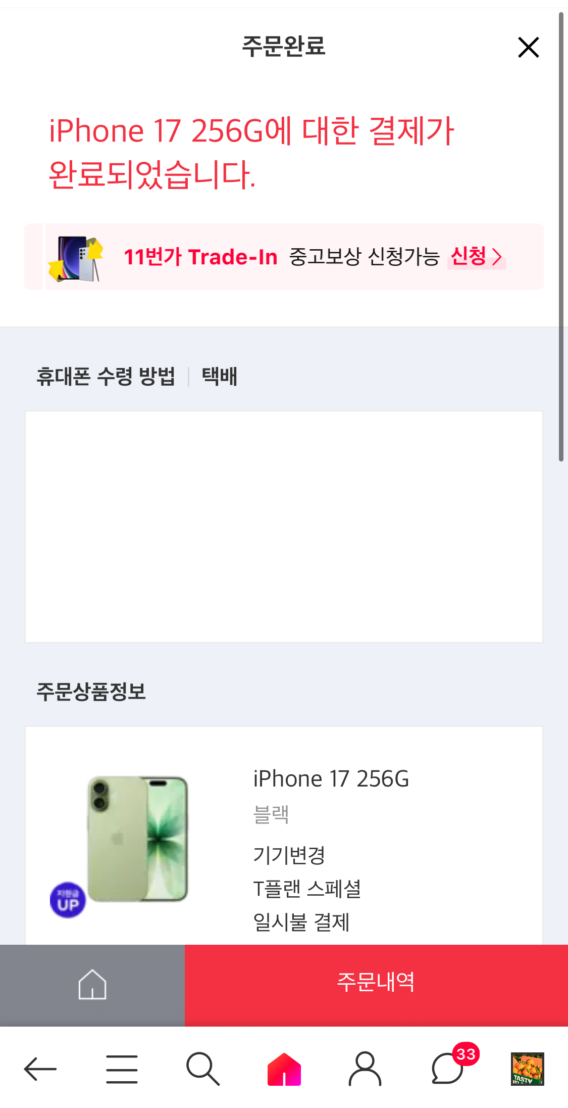 라고 하는 짝꿍의 협박 아닌 협박에 나름 괜찮은 타이밍에 11번가 T공식대리점에서 기기변경으로 드디어 주문했다.