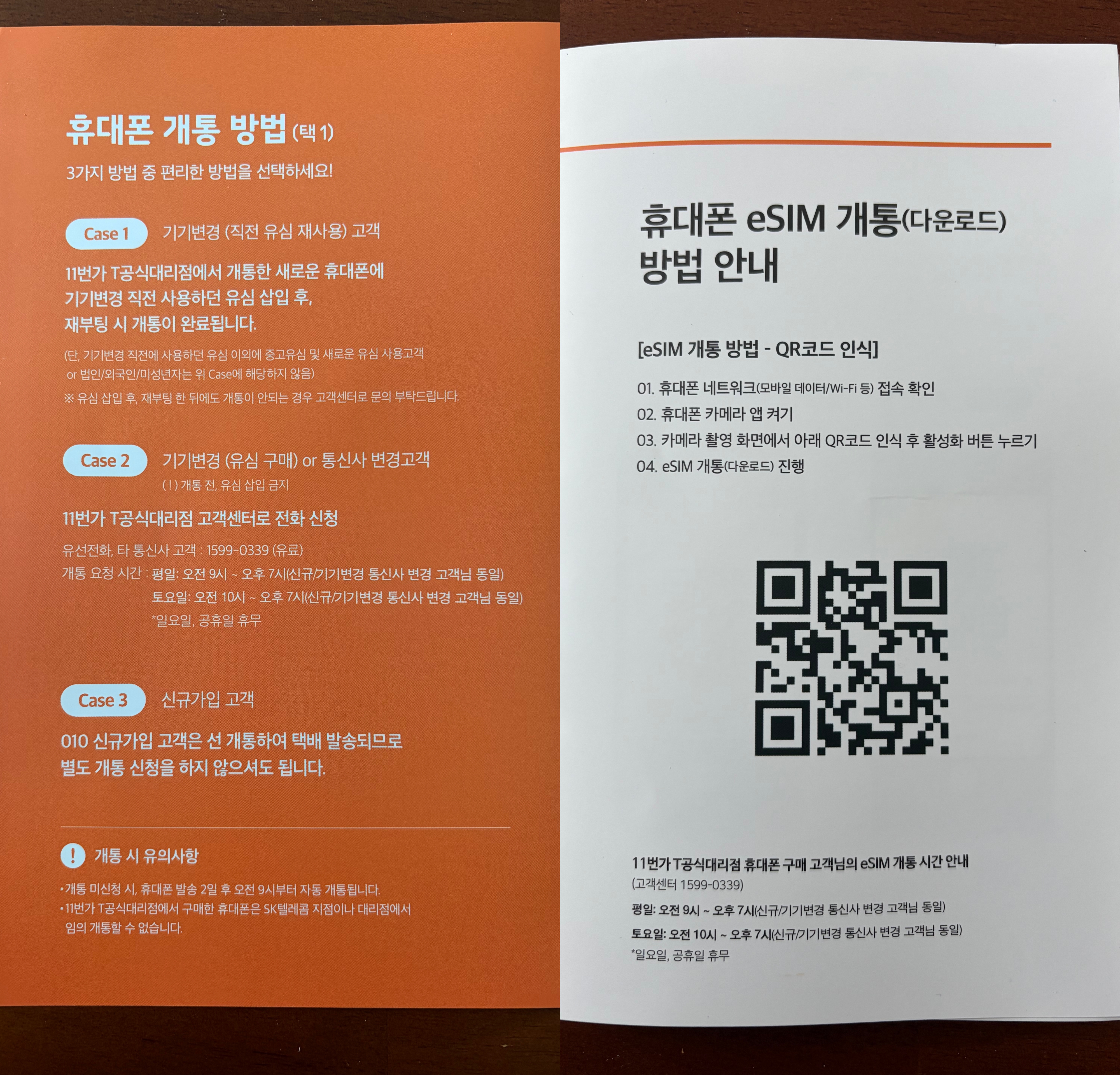 가장 중요한 건 개통가능시간이 평일과 토요일 오전 9시부터 오후 7시까지라는 것.