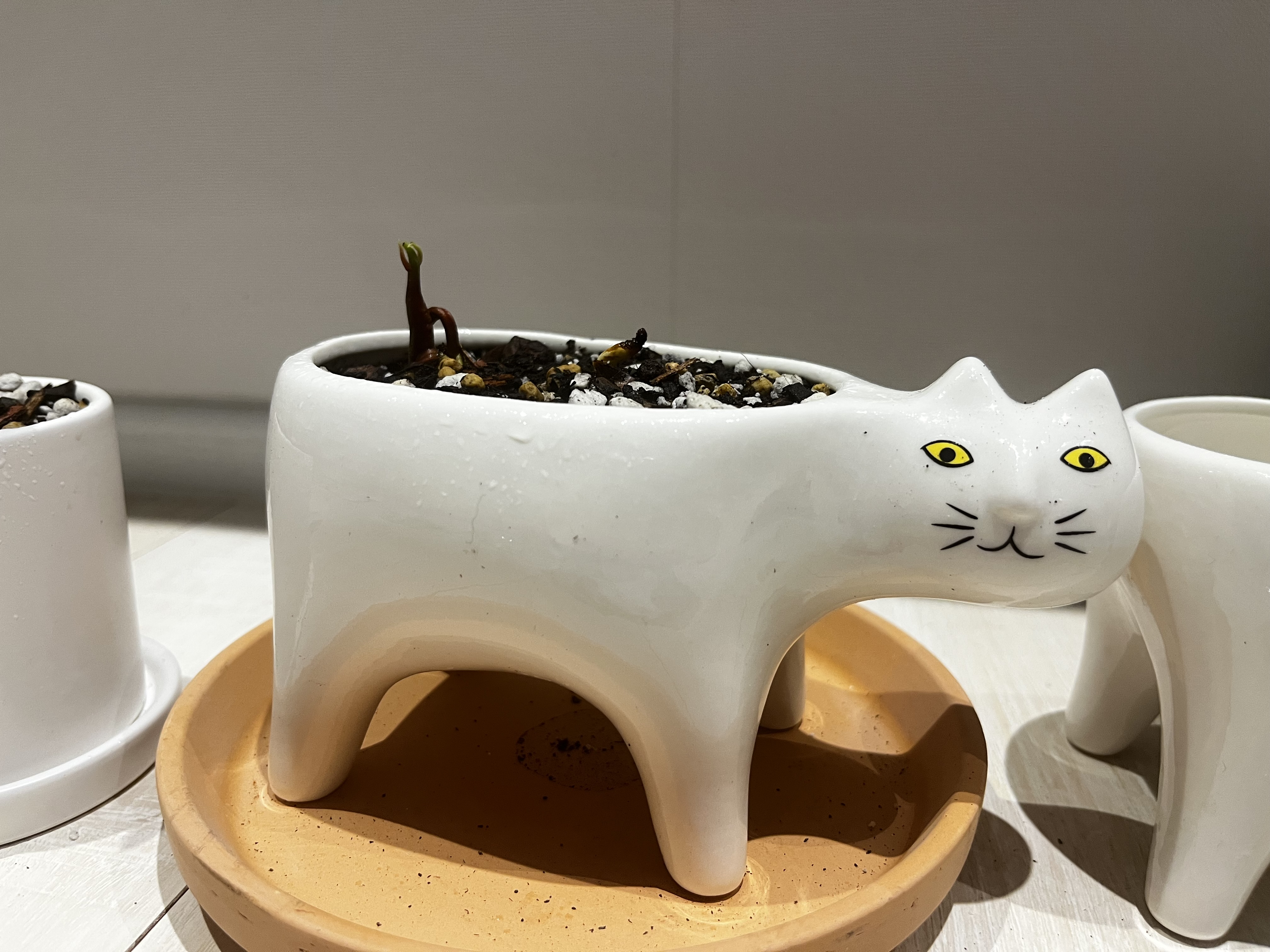 고양이 꼬리 있는 자리에 딱 싹이 올라오기 시작했다.