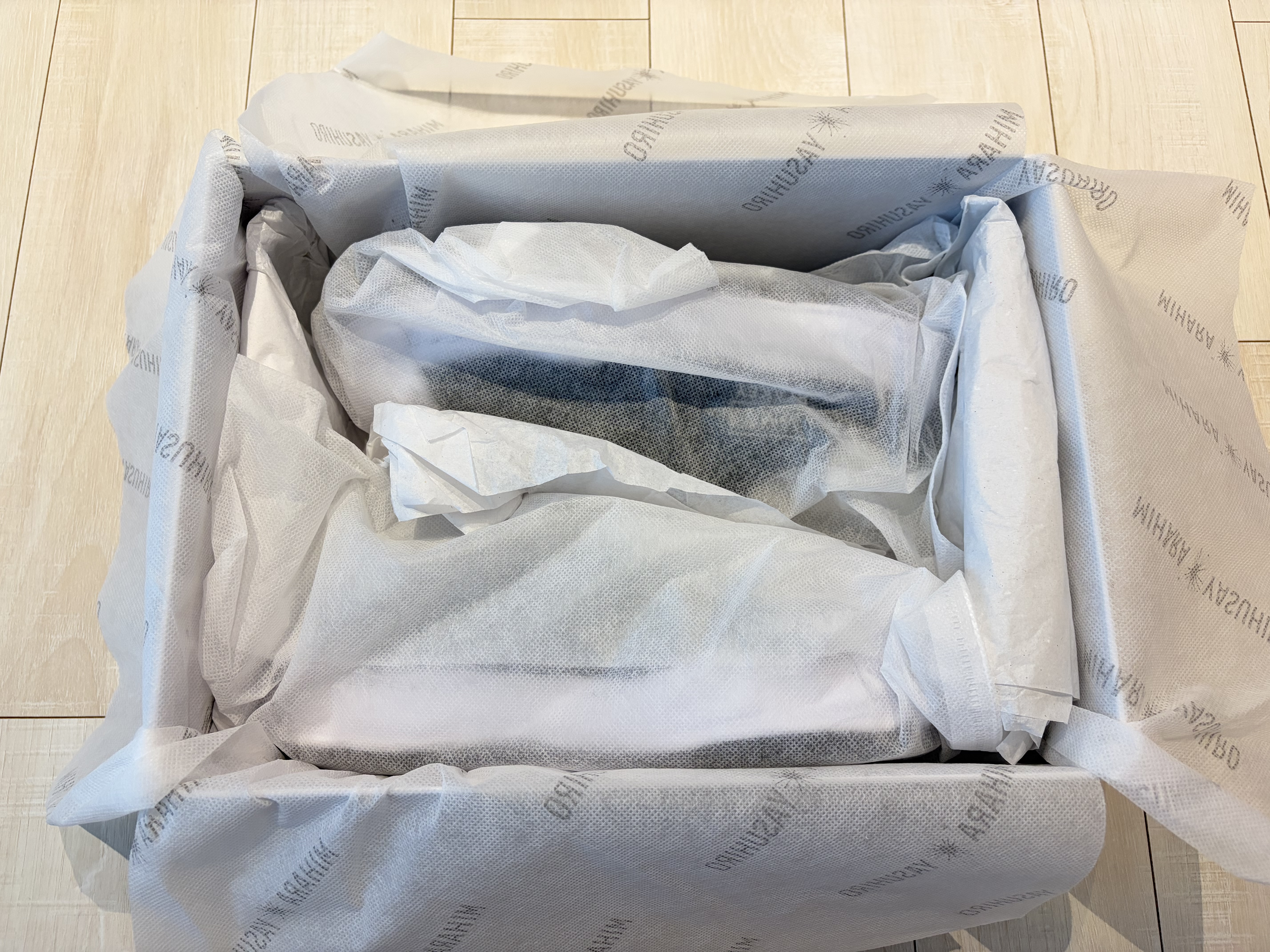 운동화가 한 짝씩 부직포로 잘 포장되어 있다.