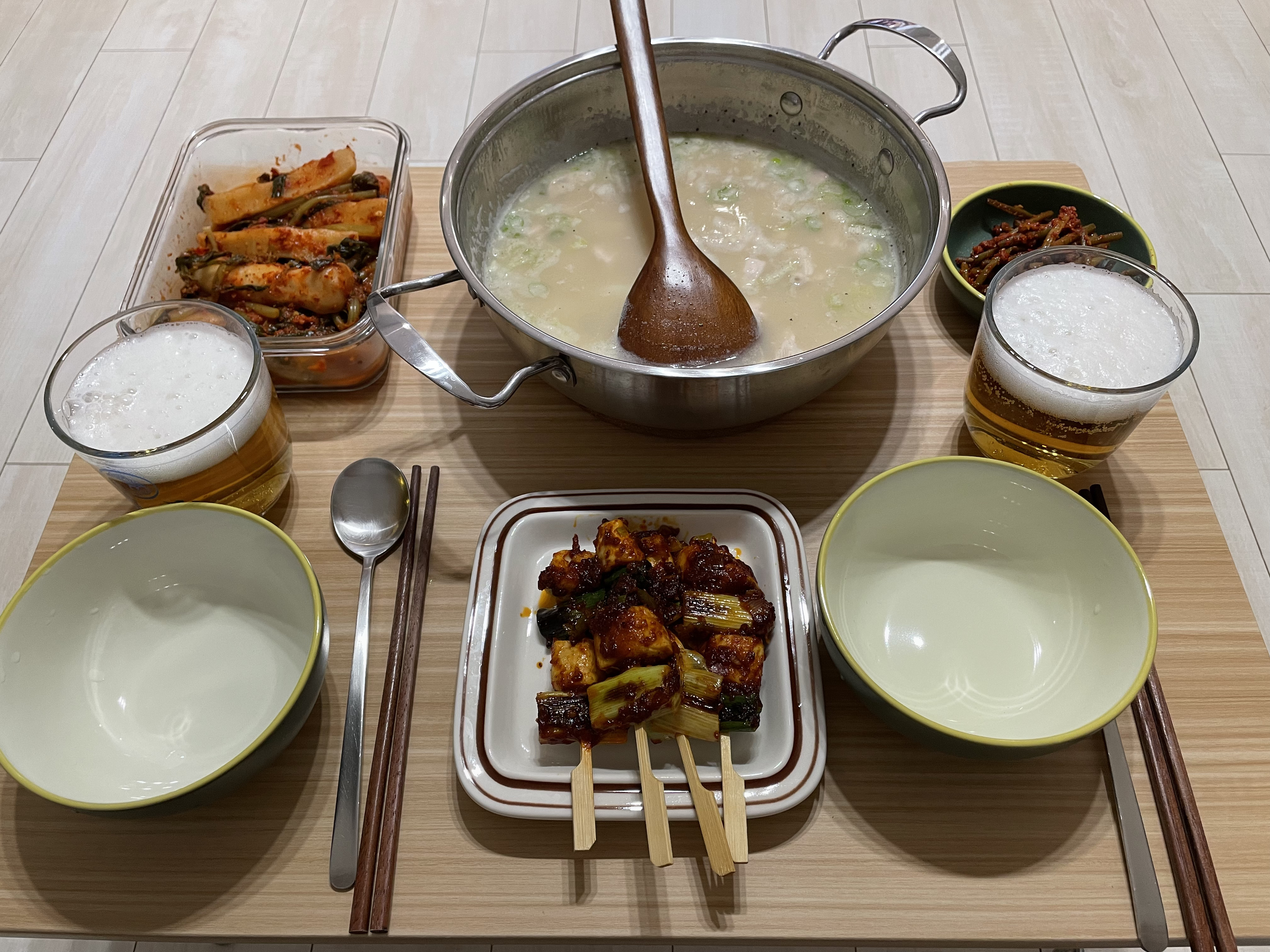 오늘의 집밥은 닭곰탕이랑 닭꼬치였다.