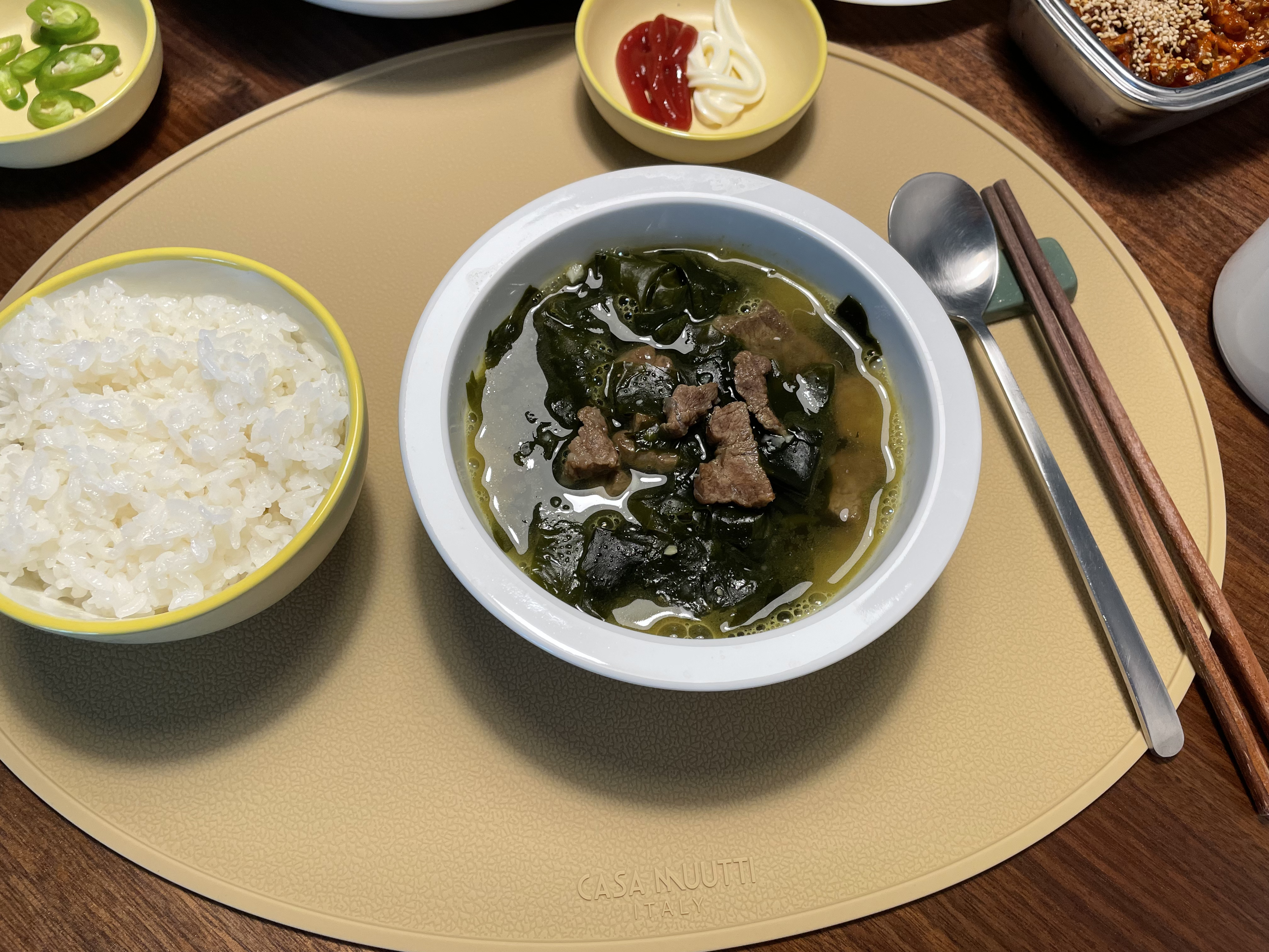 지난번 내가 끓인 미역국과는 조금 다르게 더 고소한 맛과 향이다.