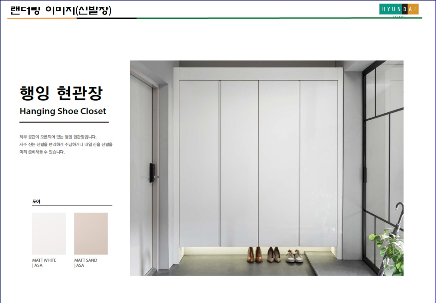 아래쪽에 간접등이 들어간 행잉 신발장으로 정했다.