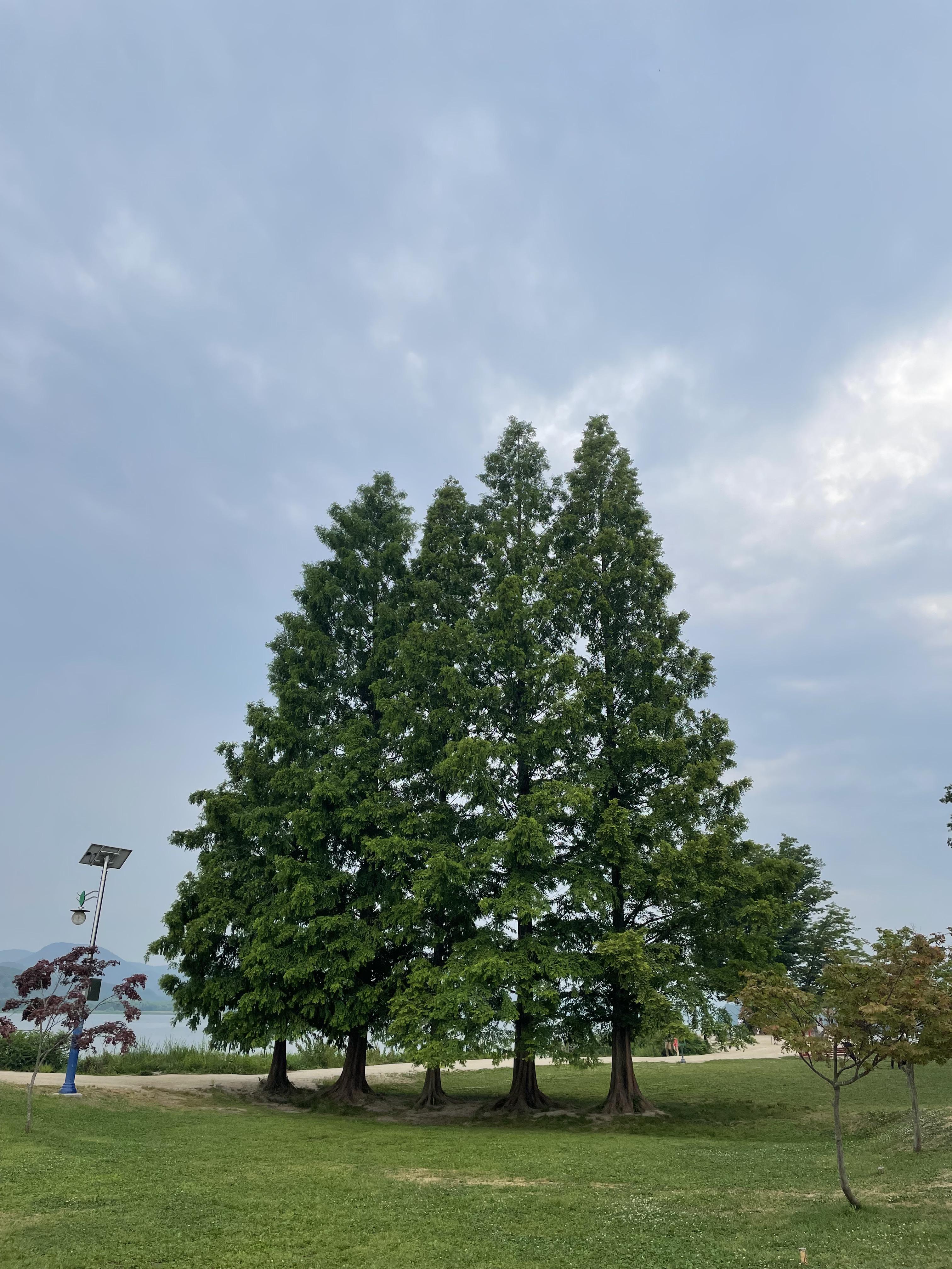 카페 앞으로 커다란 나무 다섯 그루가 멋있게 서있었다.
