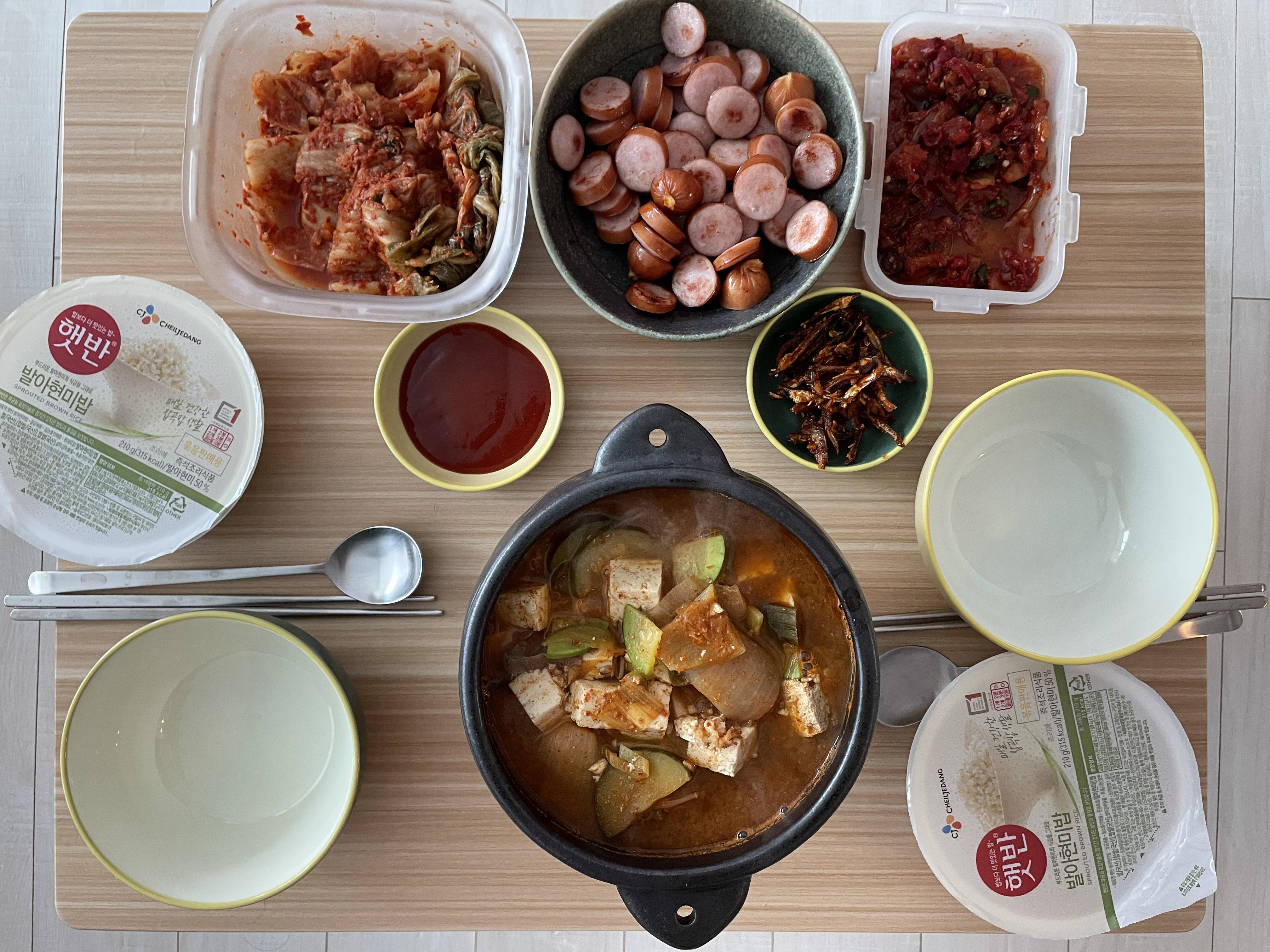 보글보글 찌개 하나 끓여서 반찬 몇 개 놓고 먹는 게 좋다.