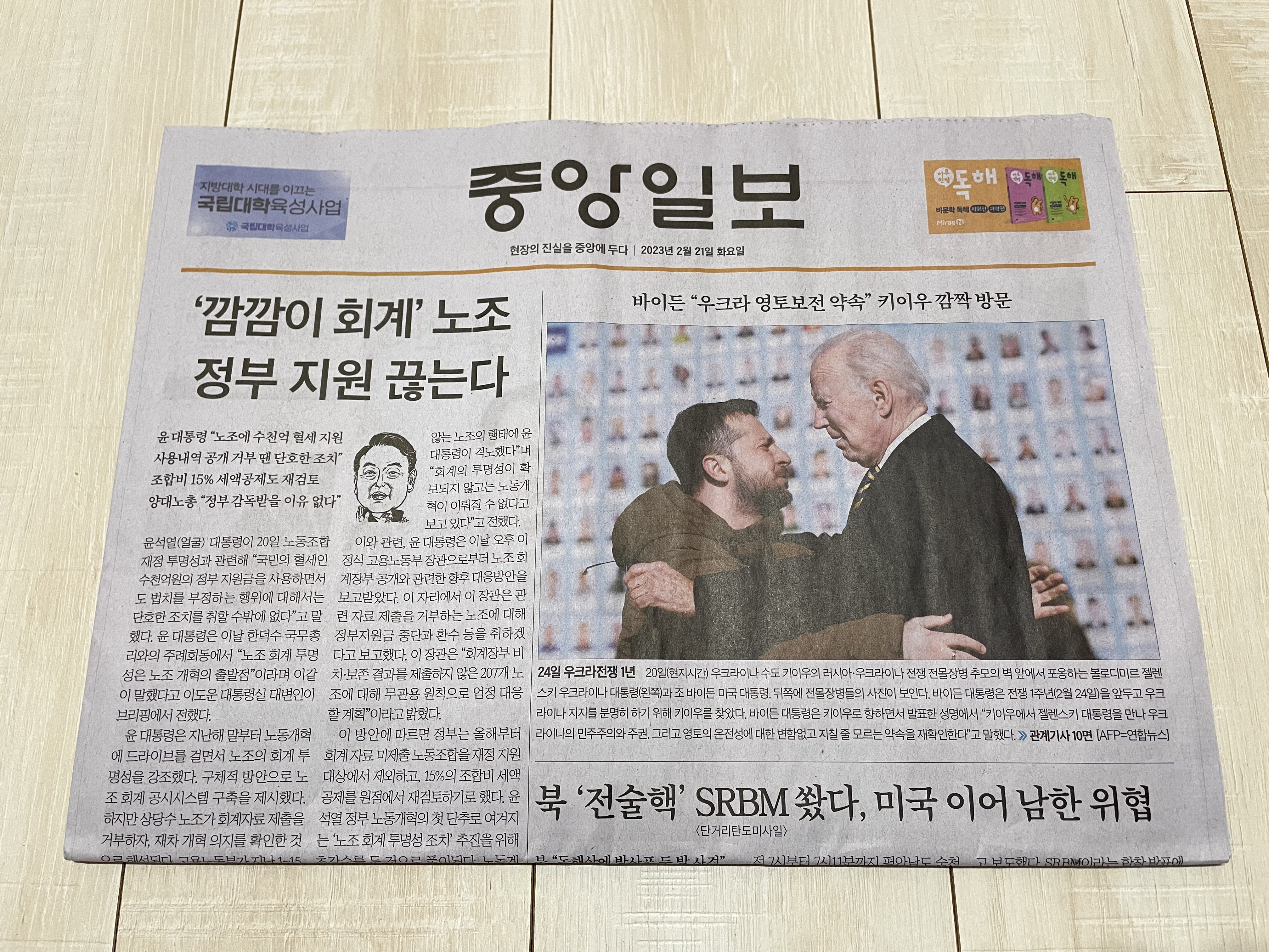 아침에 출근하려 현관문을 열었는데 신문이 와있다.