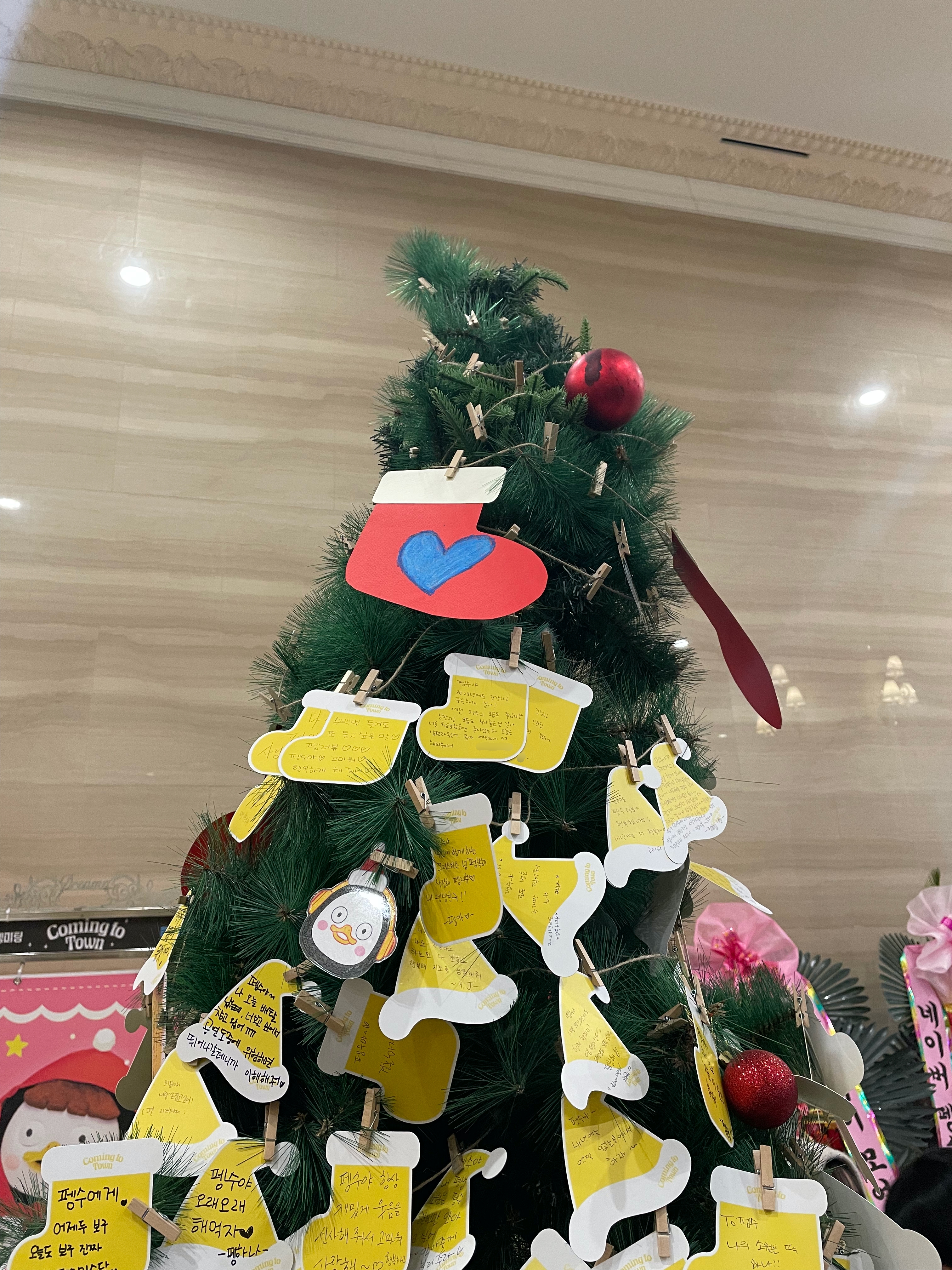 양말이랑 모자 모양으로 생긴 쪽지에 하나하나 메시지를 적어 걸어놓는다.