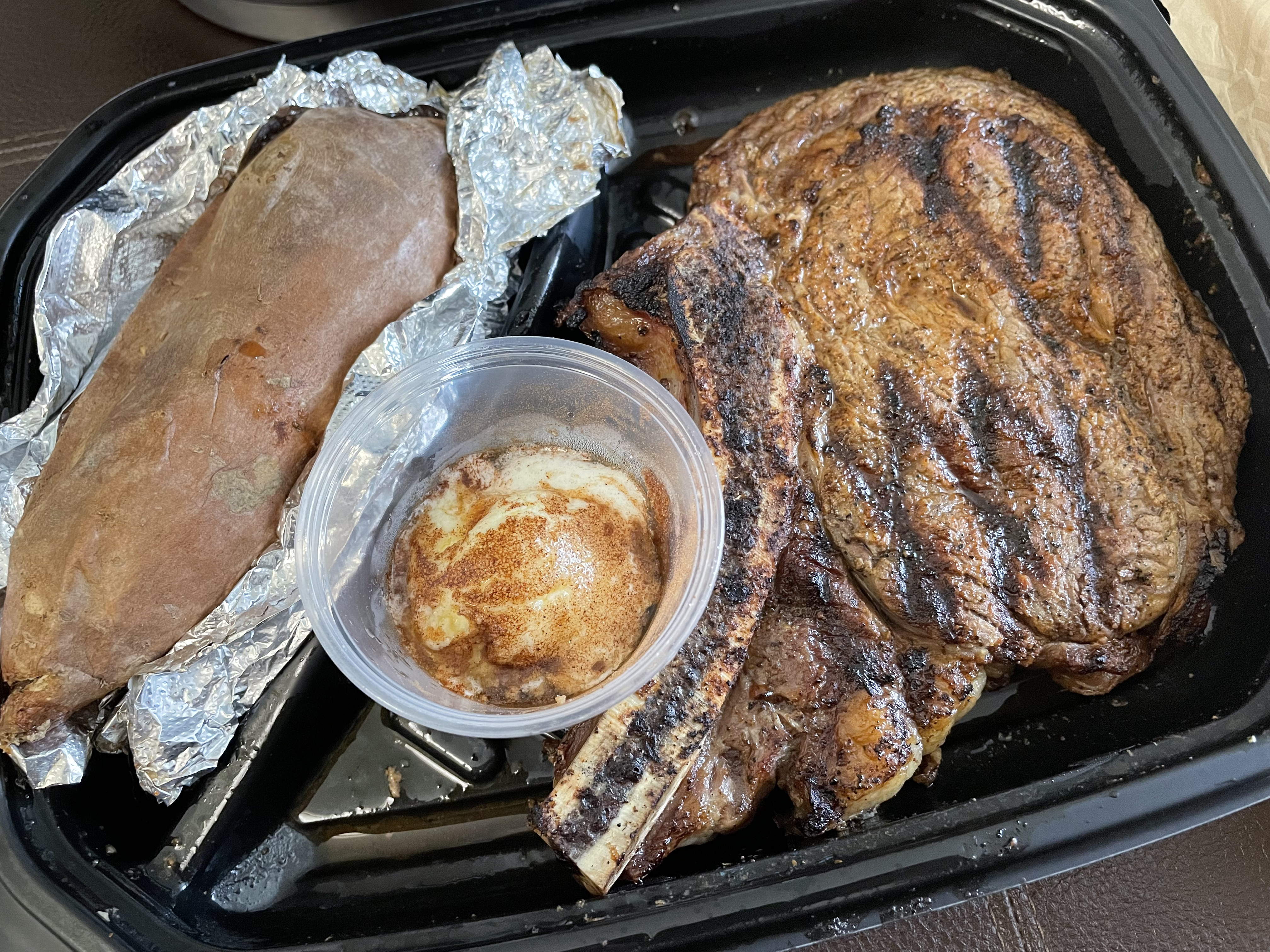 20oz 스테이크랑 고구마랑 빵이랑 샐러드까지 해서 31.38불.