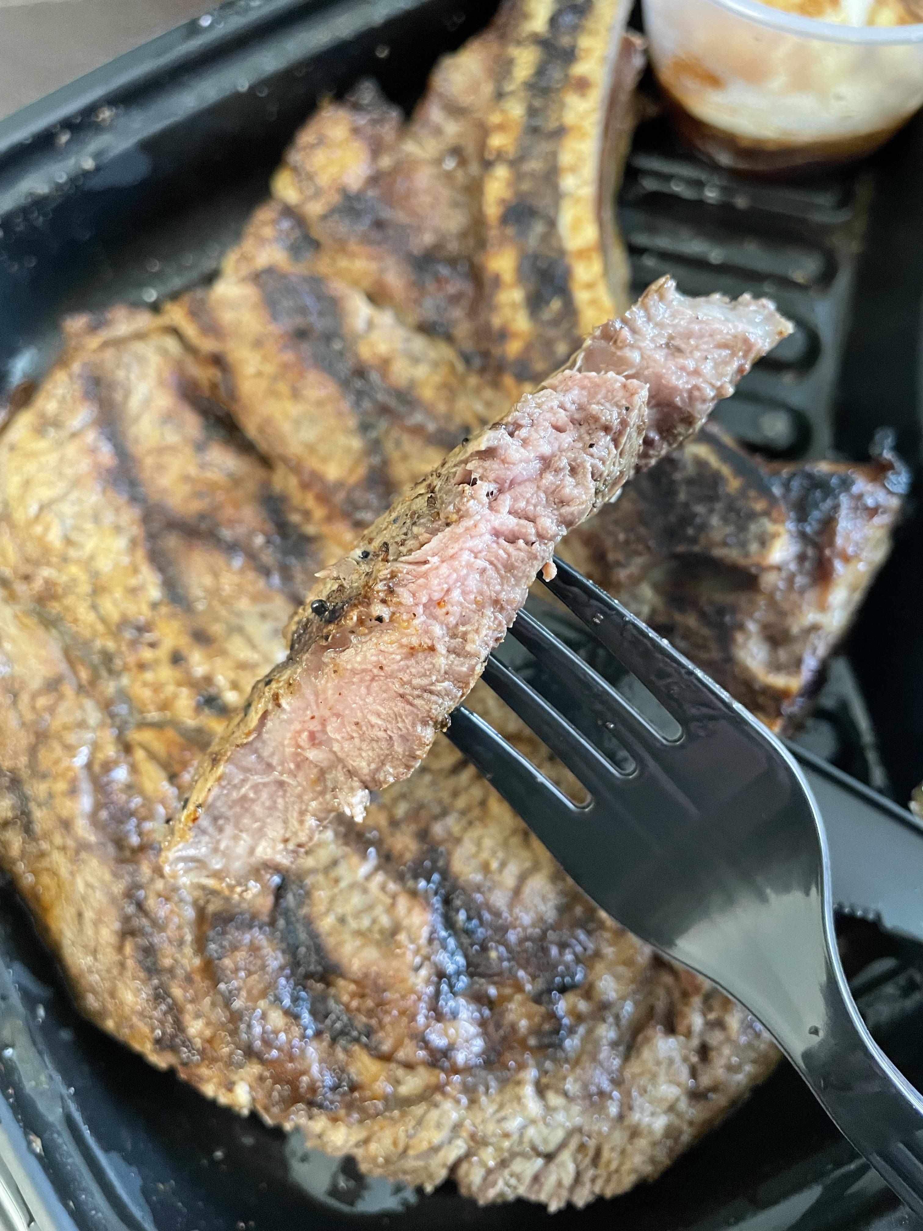 뼈에 붙어있는 커다란 스테이크의 모양이 마치 만화에 나오는 그 고깃덩어리 같았다.