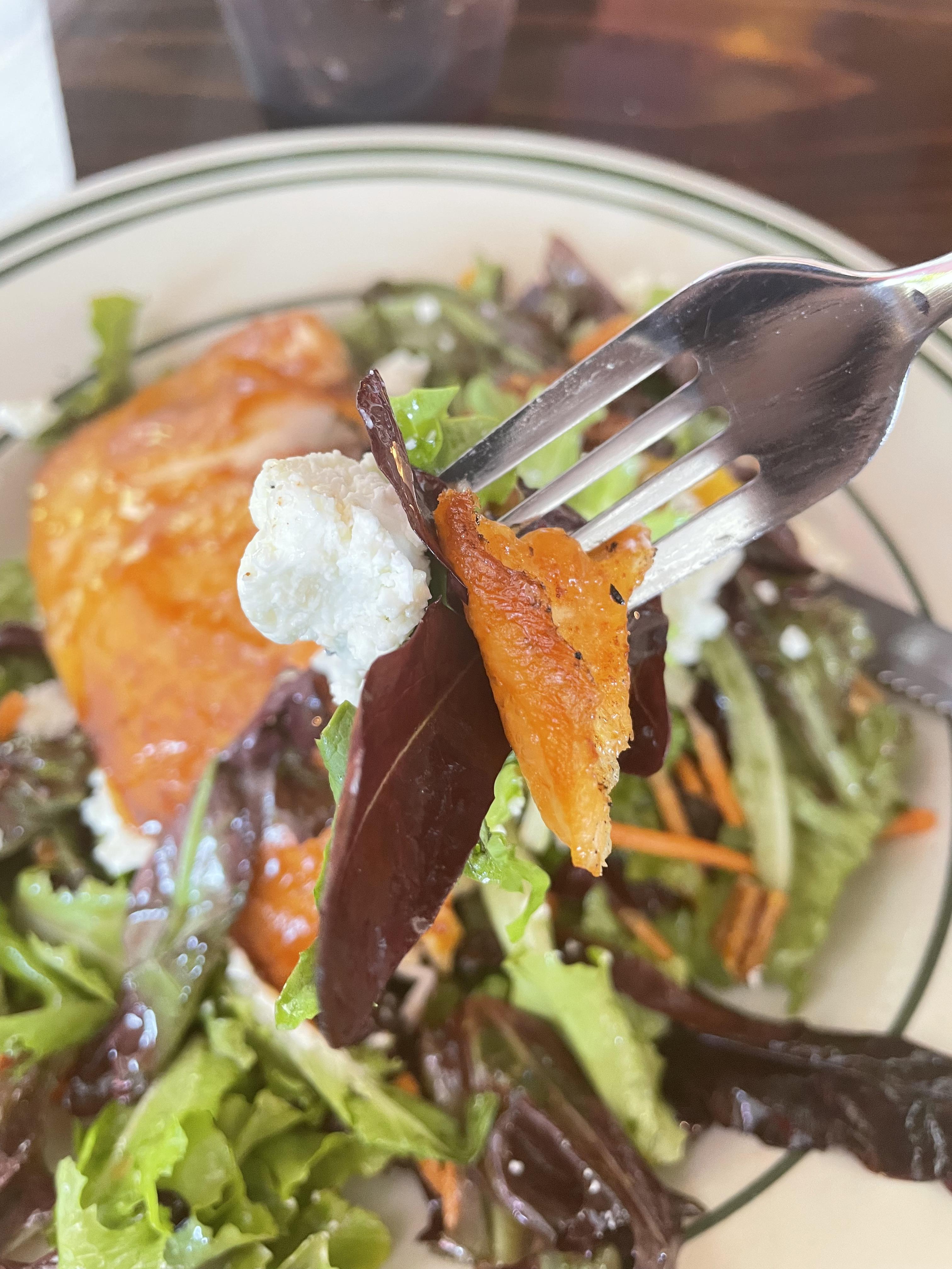 새콤달콤한 샐러드의 향과 노릇고소한 연어의 향이 식욕을 자극한다.
