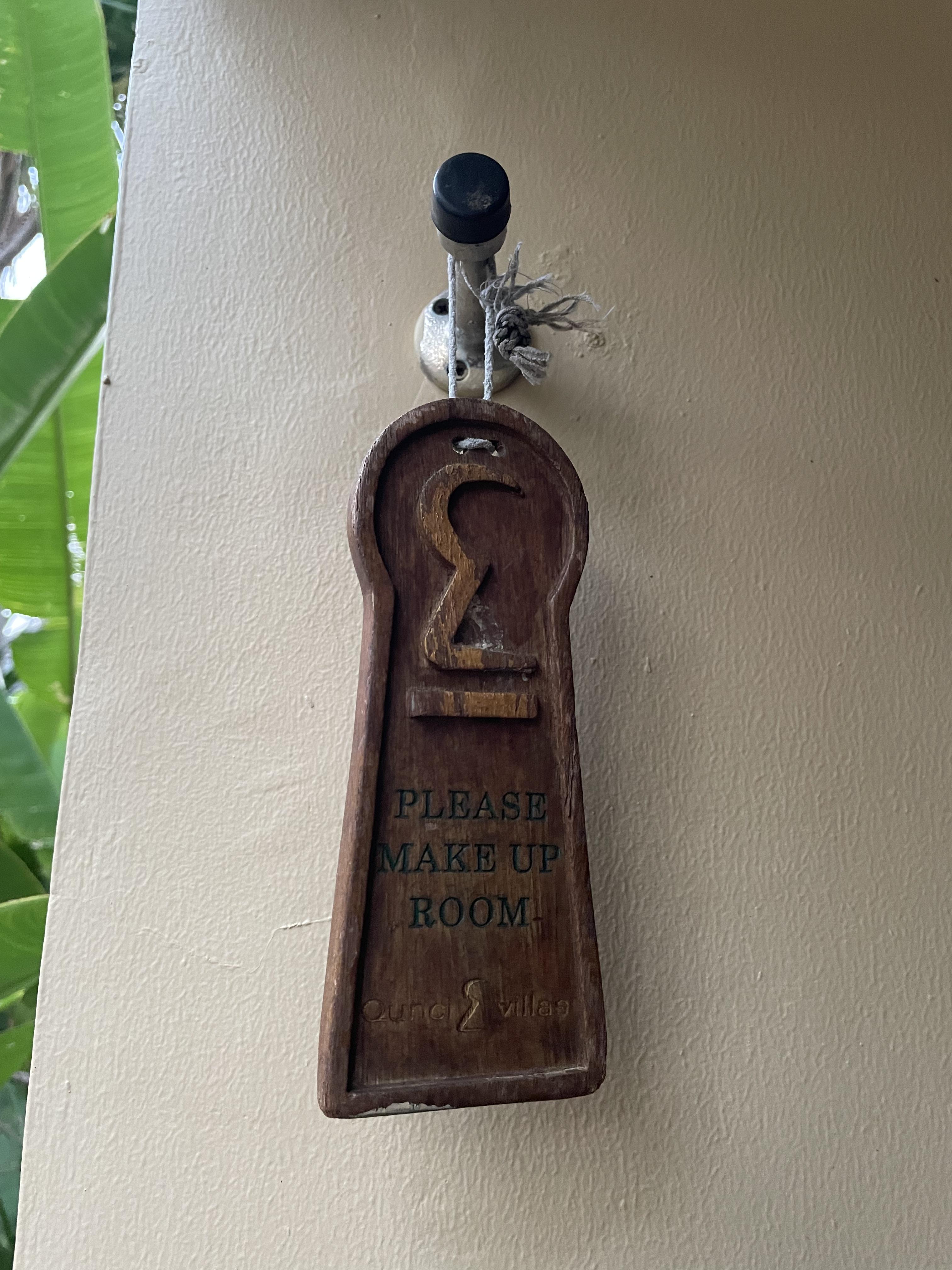 호텔 가면 있는 "청소해주세요" 표시가 문 옆에 걸려있다.