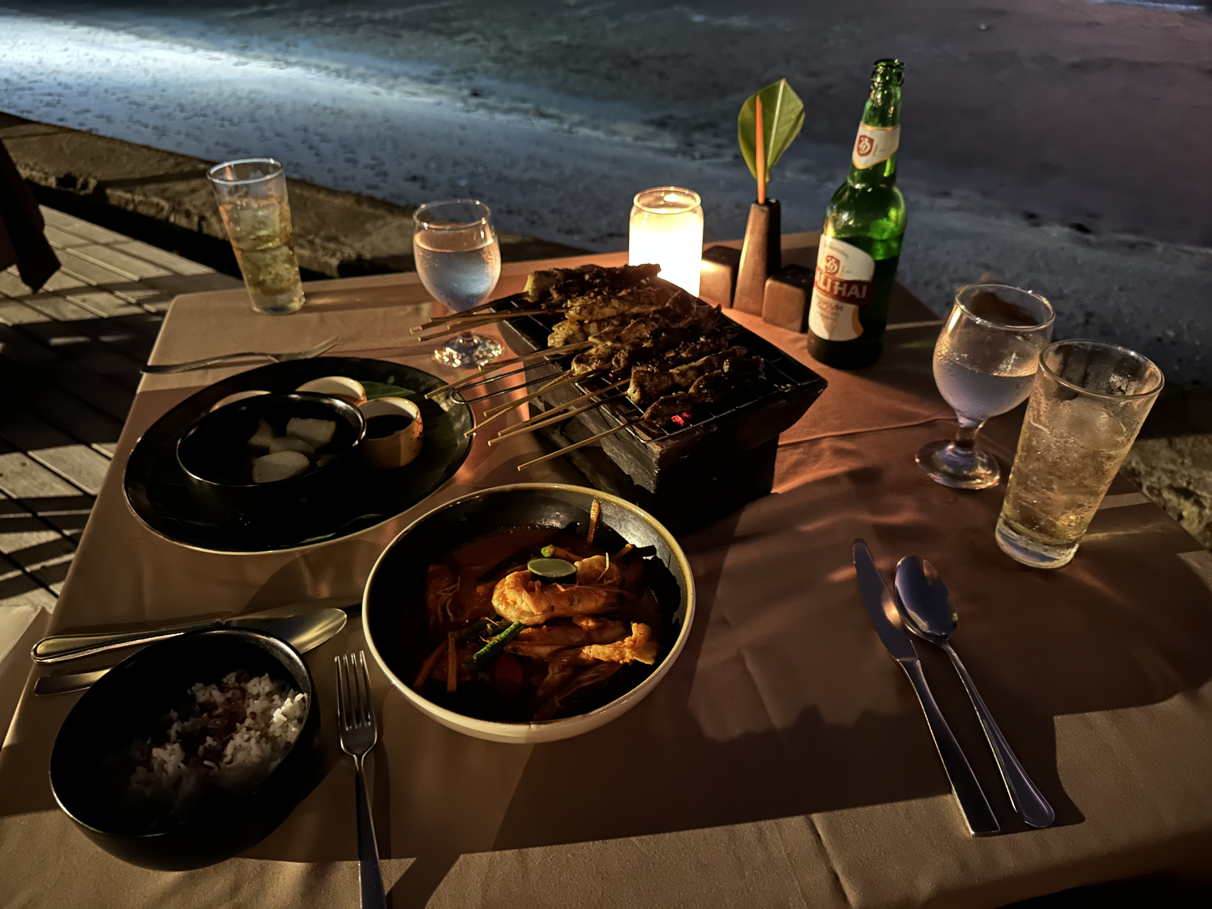 우리도 해변 바로 앞 테이블에 자리 잡았다.