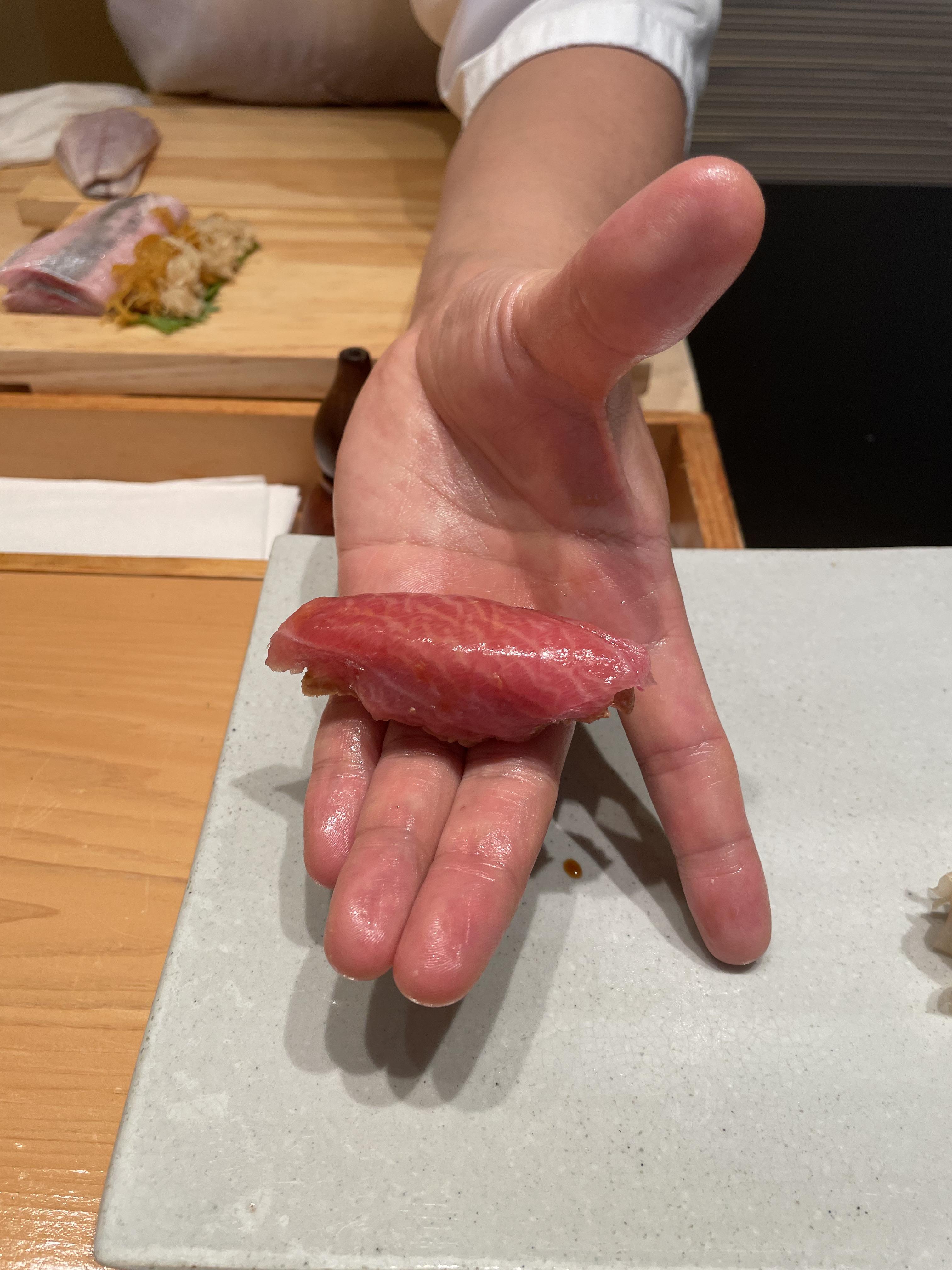 바로 먹어야 하는 스시는 바로 손으로 건네주신다.