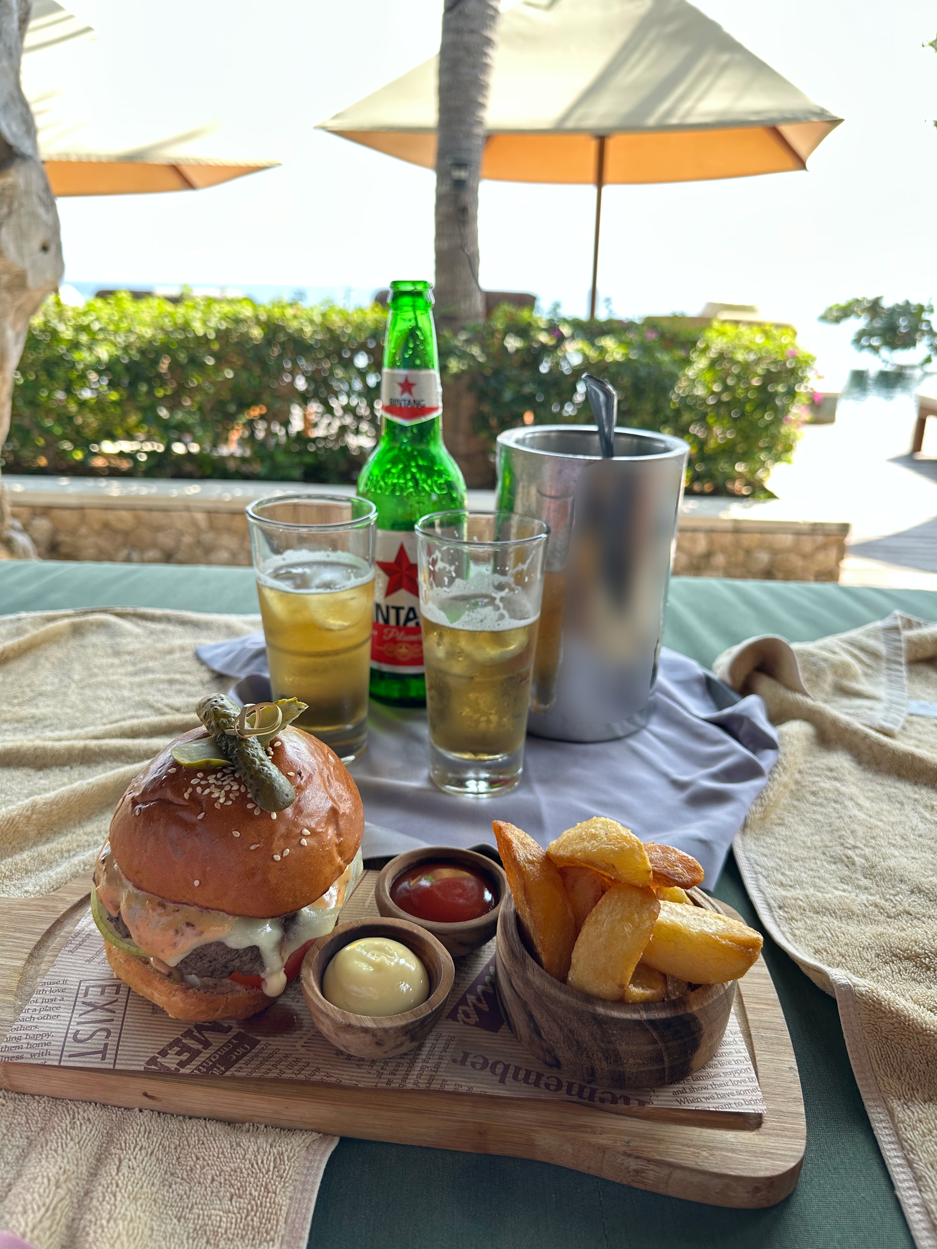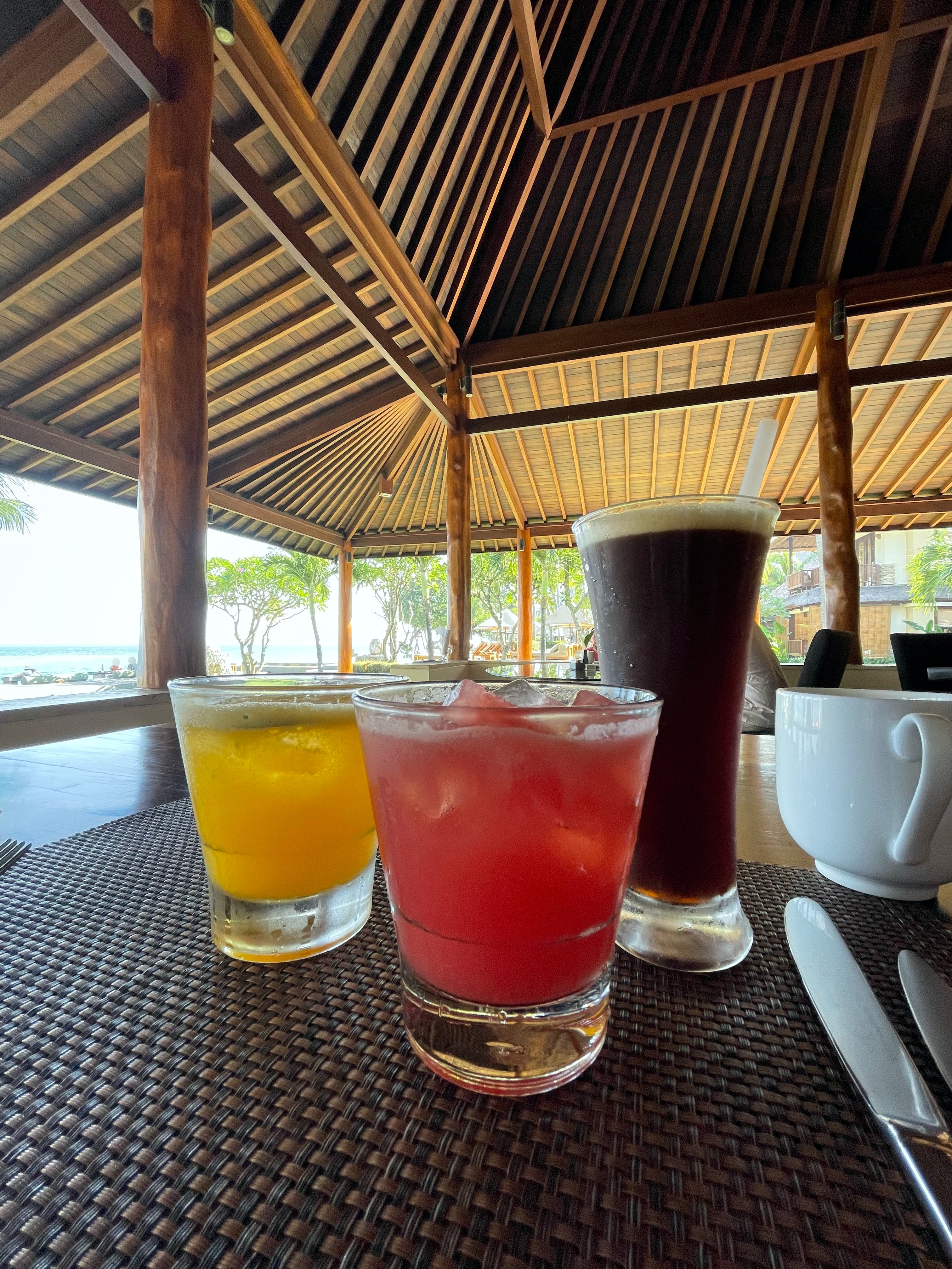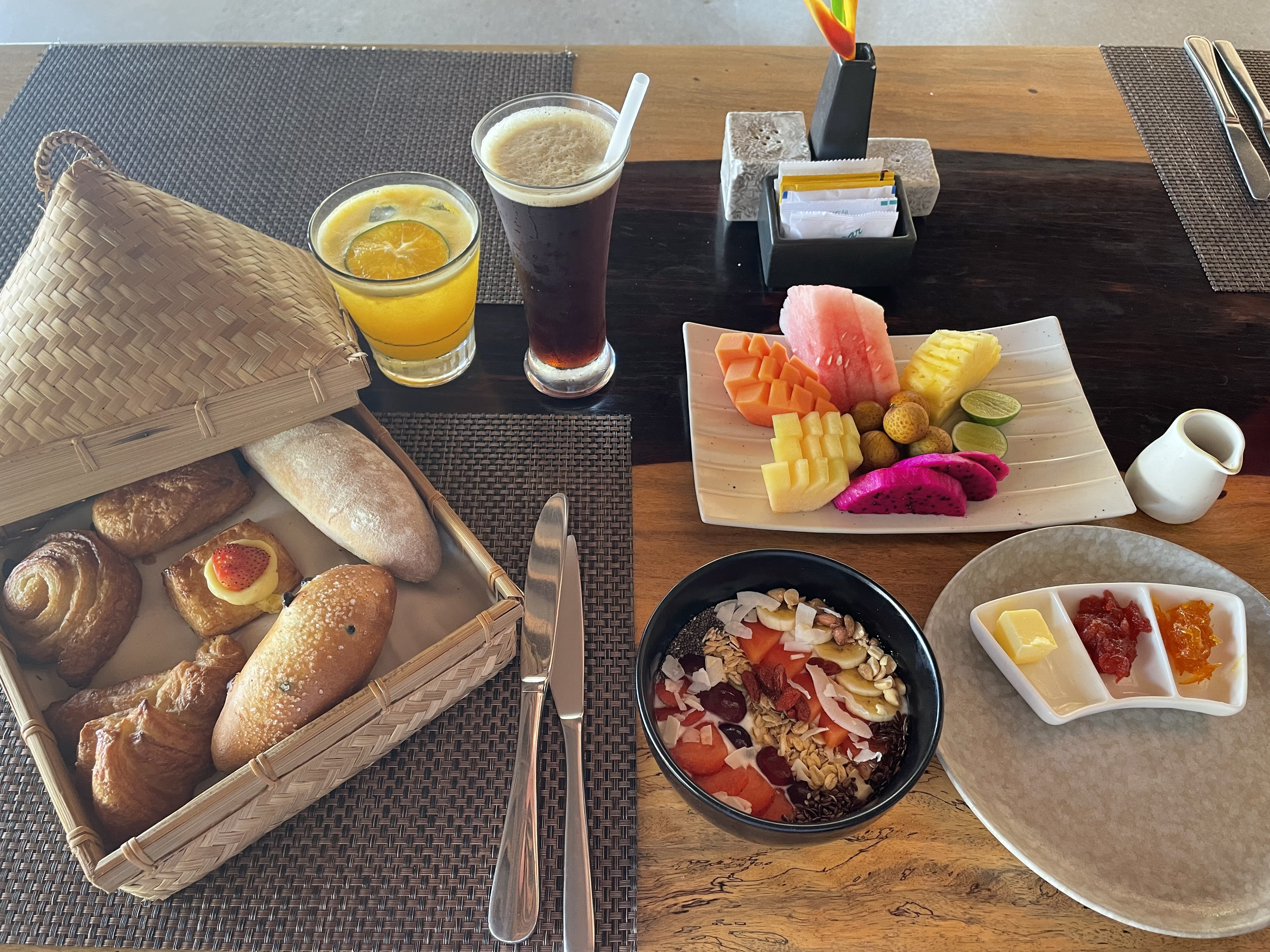 오늘은 조금 일찍 일어나 해변 산책 한 바퀴 하고 조식 먹으러 자리를 잡았다.
