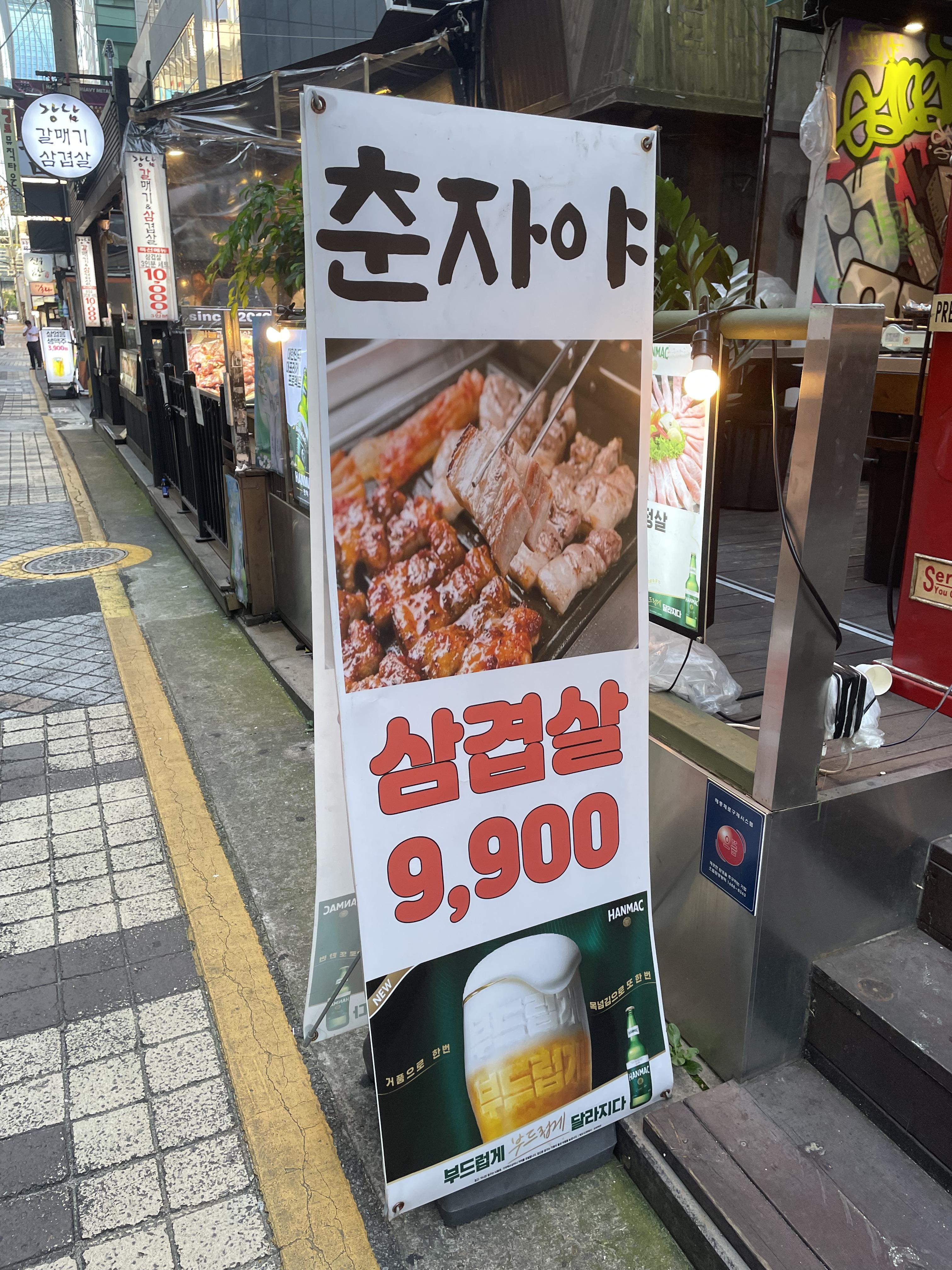 긴 하루를 마무리하며 강남역에서 맛있는 냉삼에 소주 한잔 하는 장면이 나온다.
