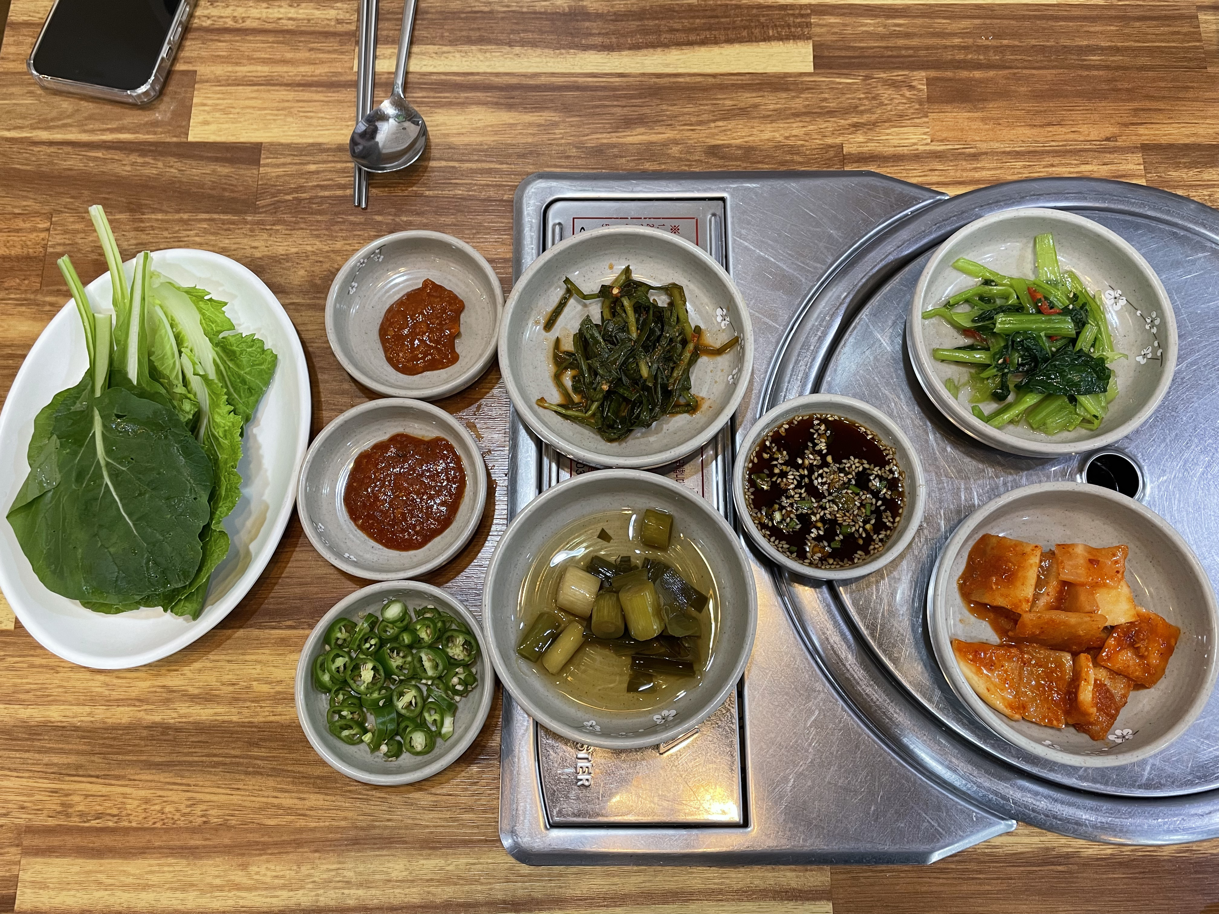앉아서 주문을 하고, 기본 반찬이 나왔다.