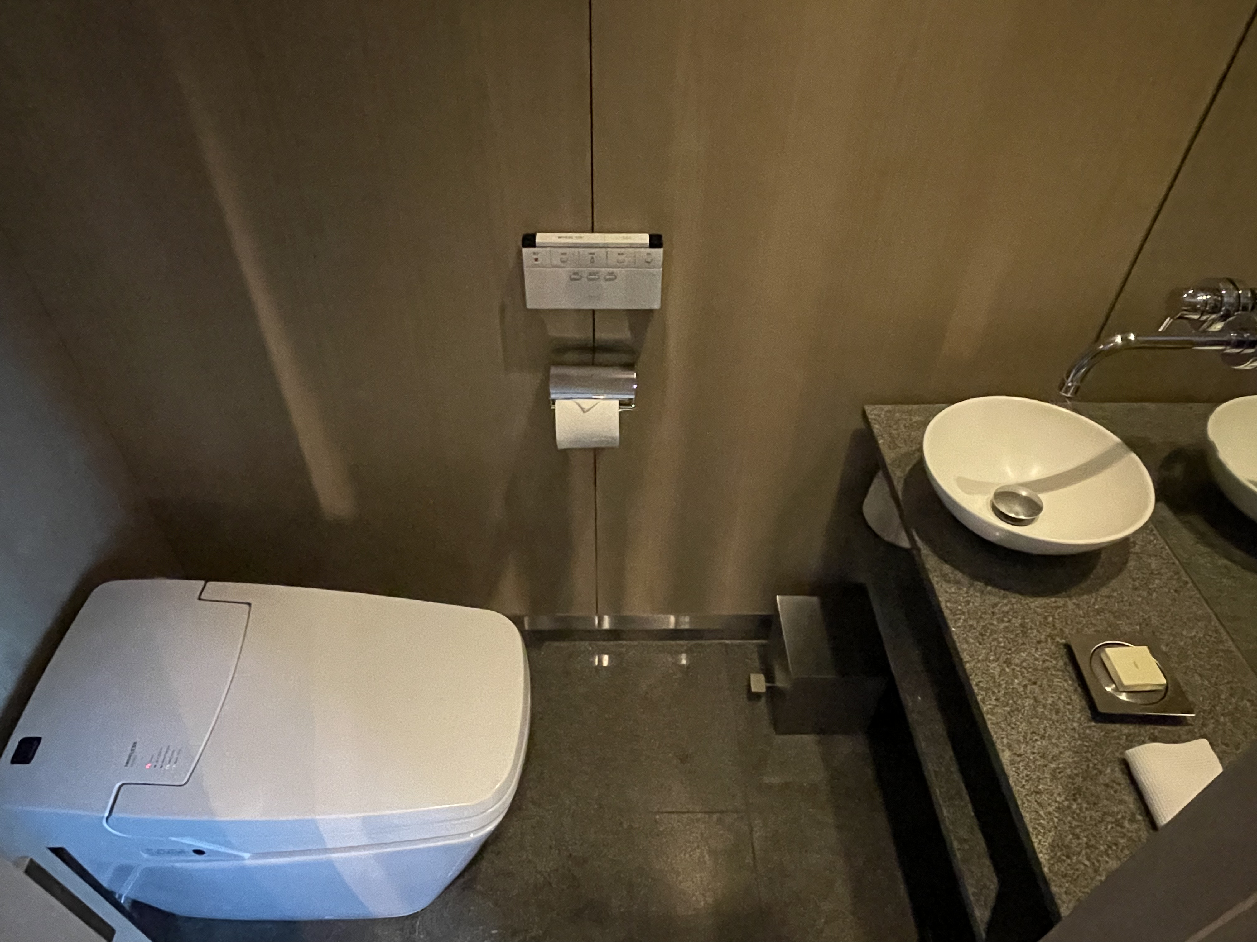 비데가 있는 변기와 작은 세면대가 따로 준비되어 있다.