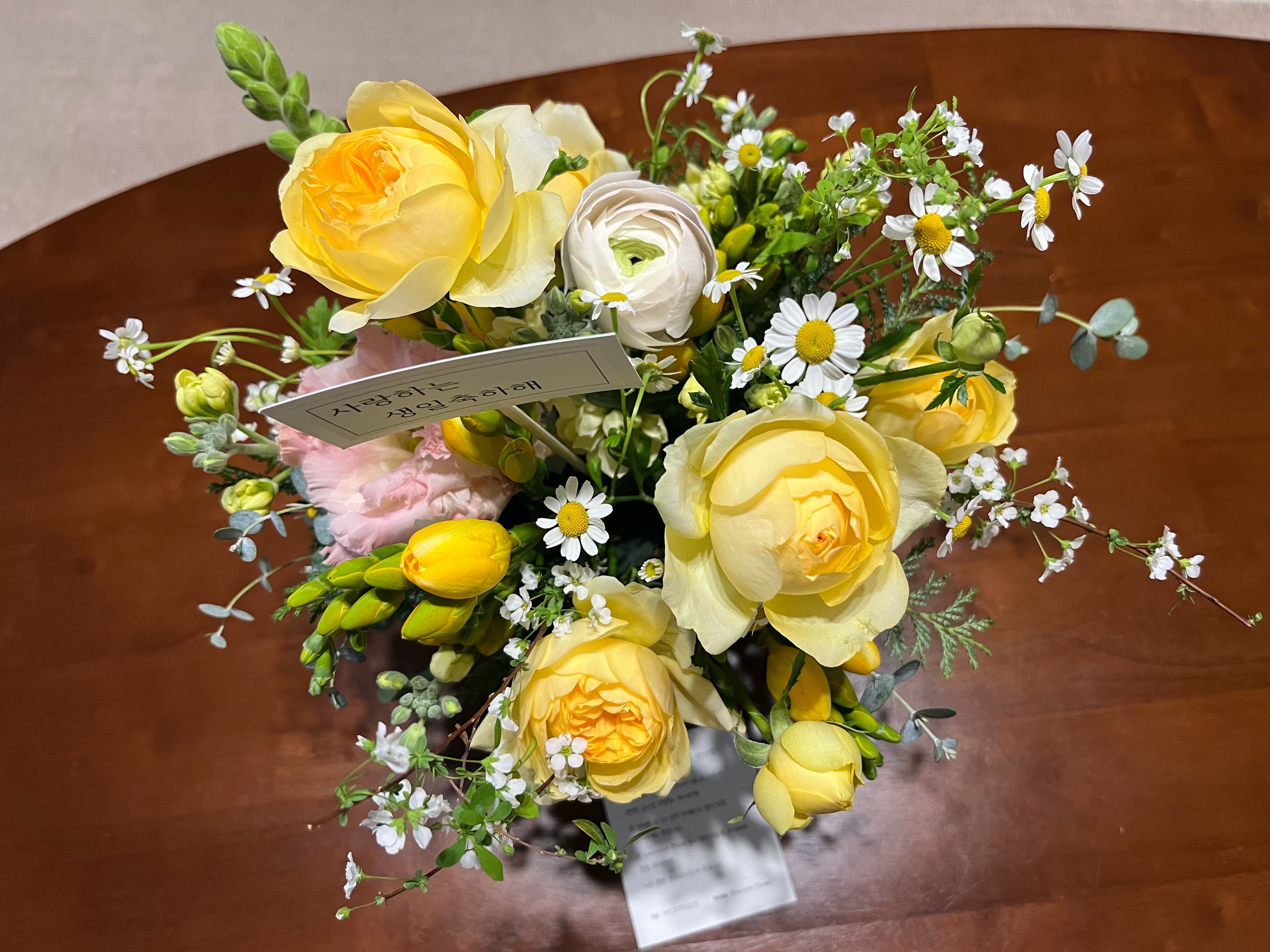 여기저기 알아보다 예약주문한 꽃도 시간 맞게 도착했다.