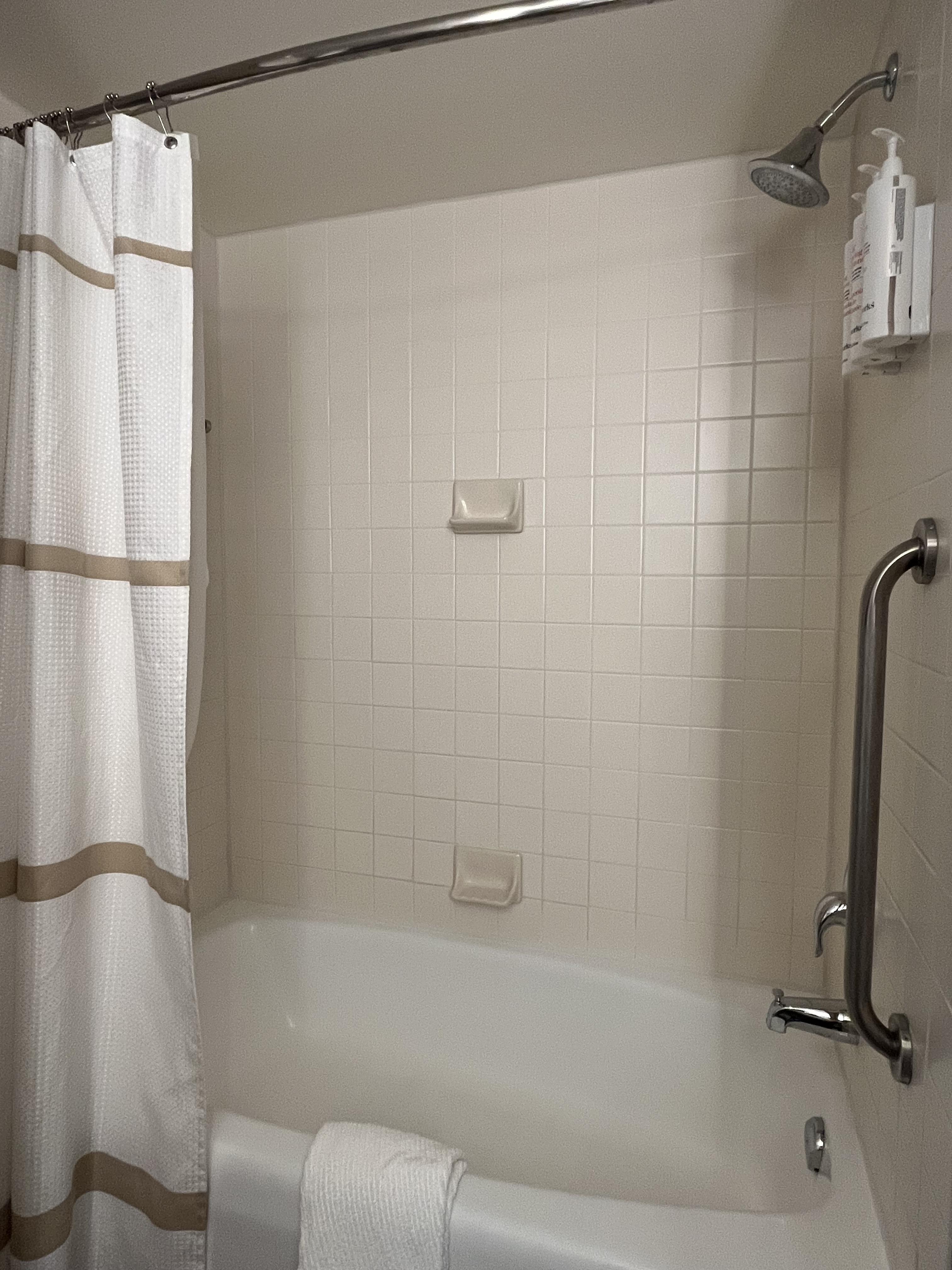 살짝 세월이 느껴지는 욕조와 샤워커튼.