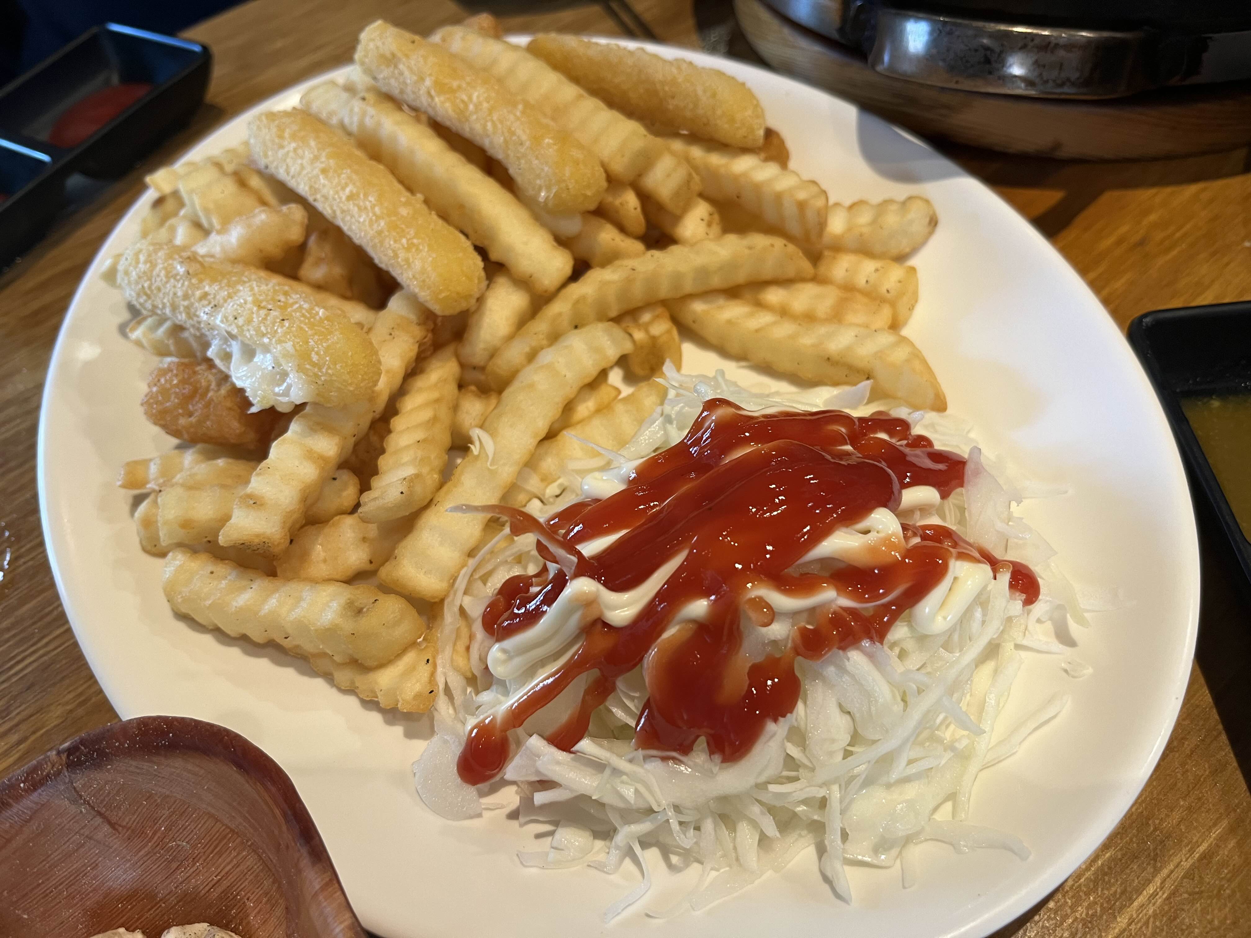 다른 거 뭘 먹어볼까 하다가 시킨 치즈스틱/감자튀김.