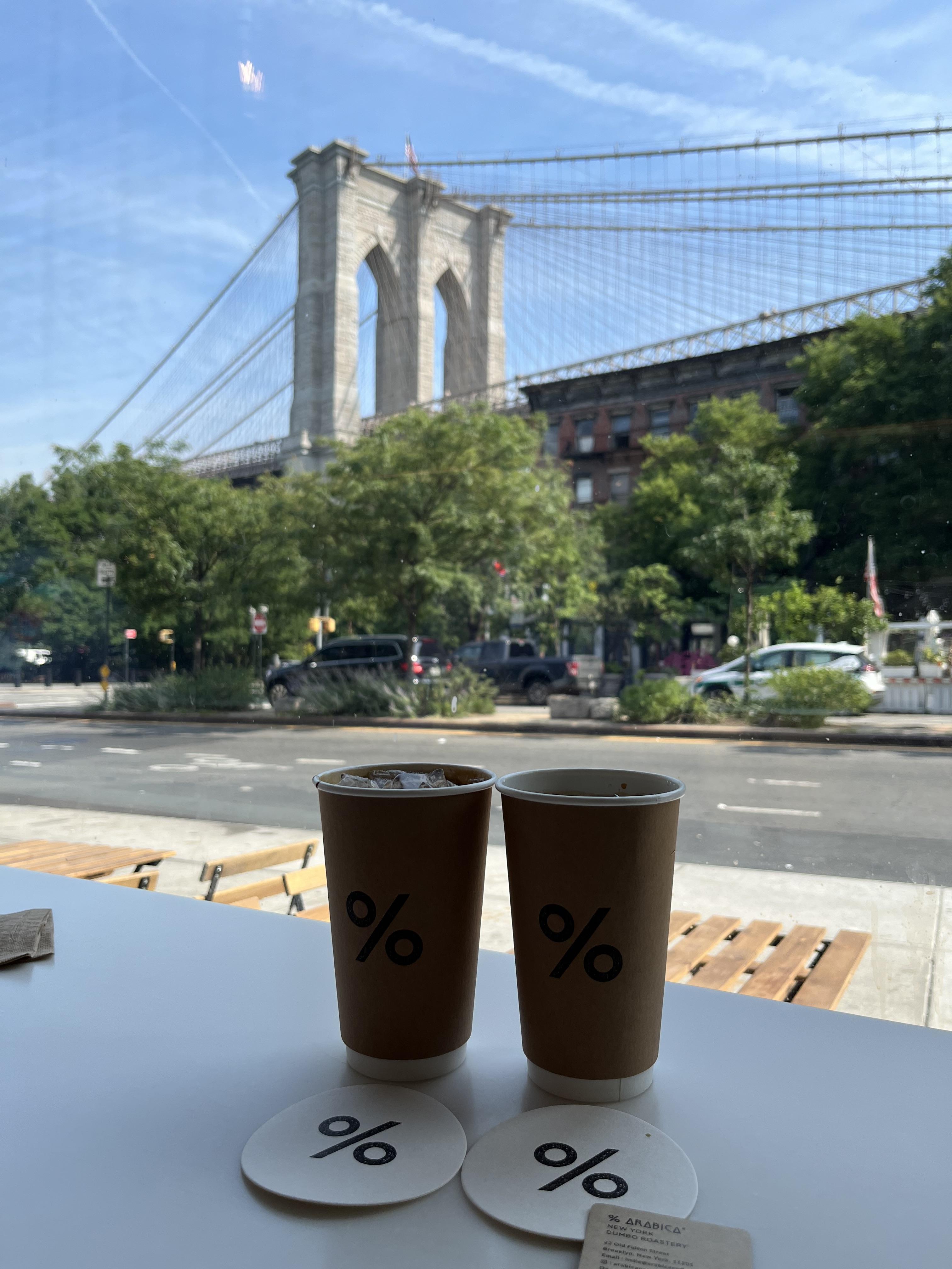 카페에 앉으면 큰 통창으로 브루클린 브리지가 보인다.