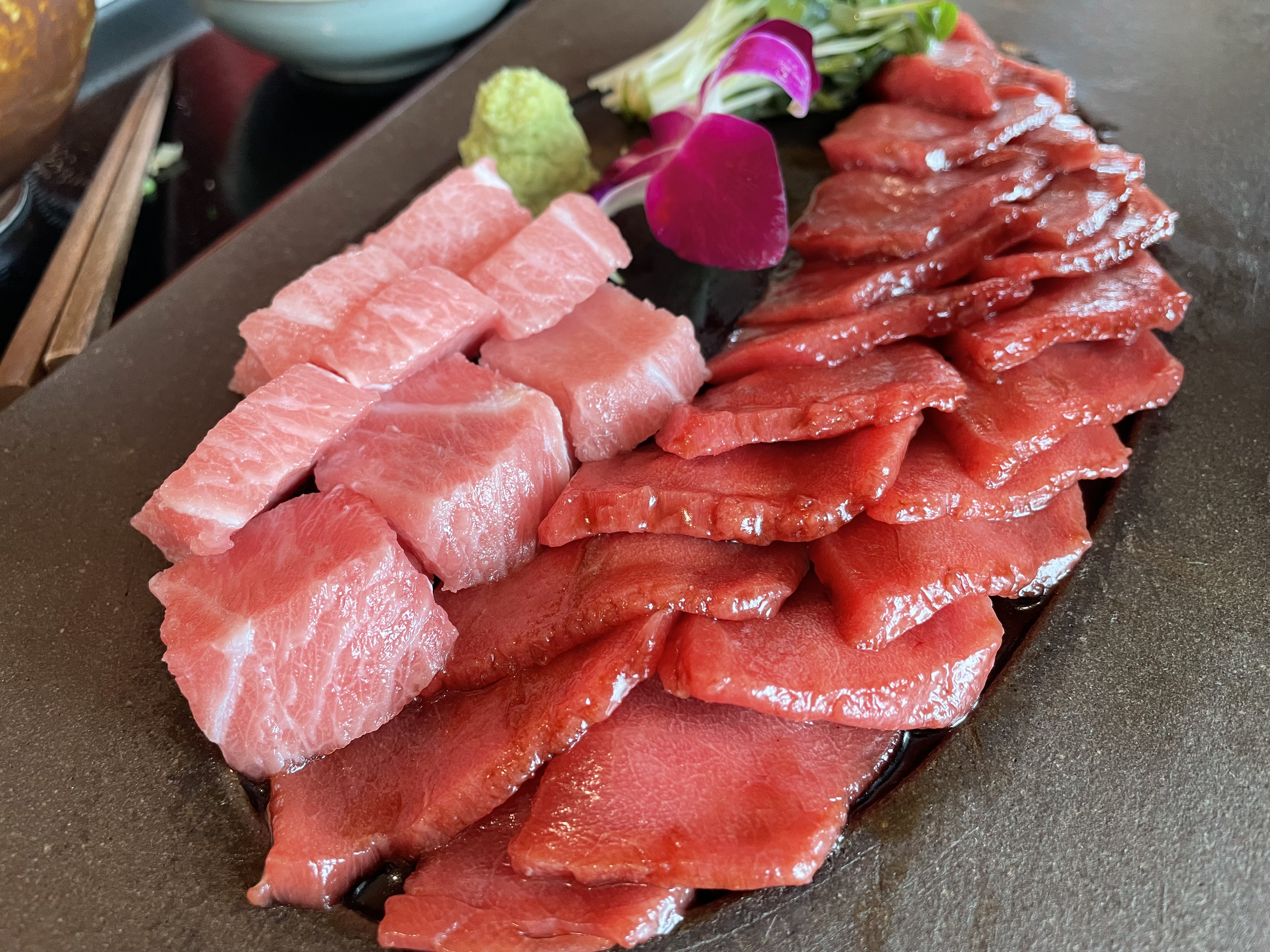 한켠엔 간장 베이스로 잘 숙성된 참치가 있다.