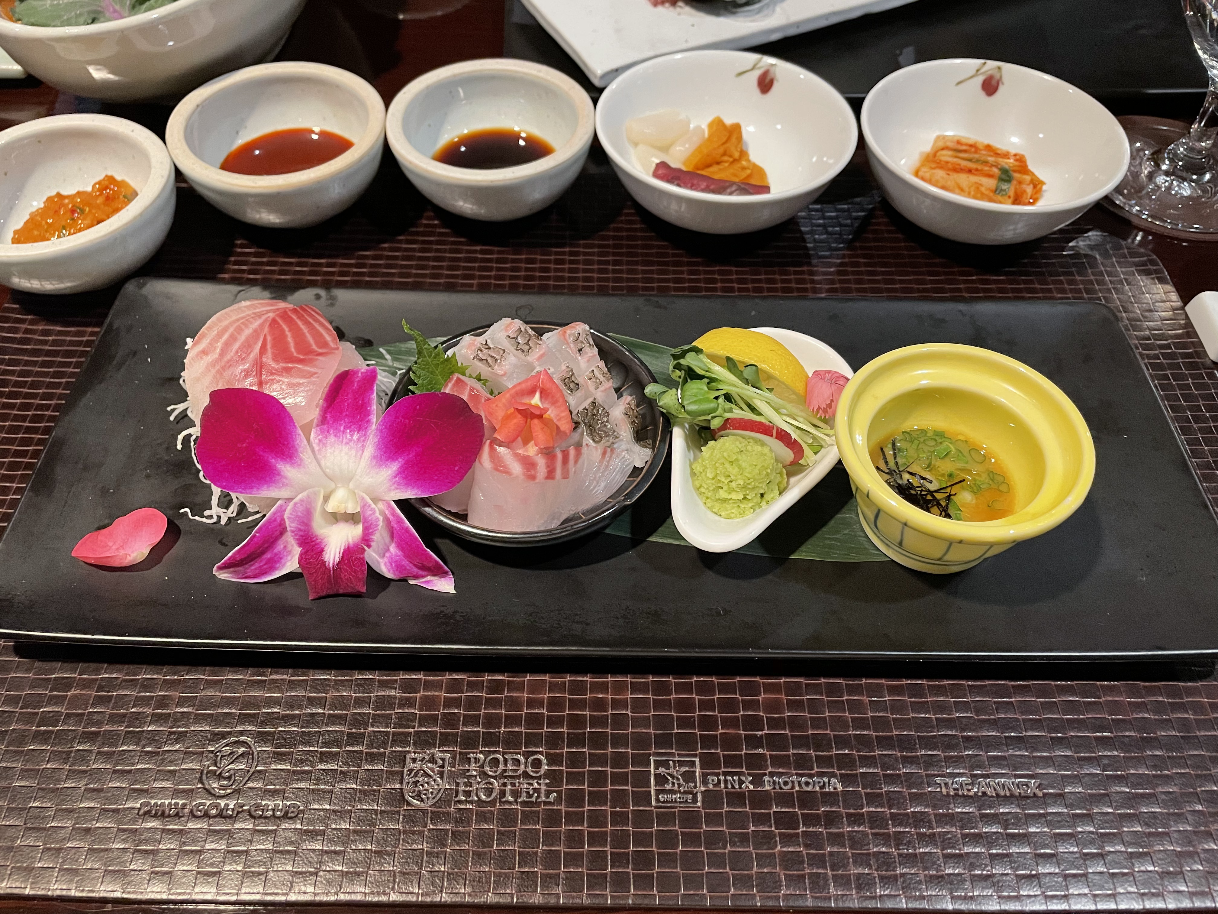 우리는 오늘 '포도 특선 회 코스'를 주문했다.