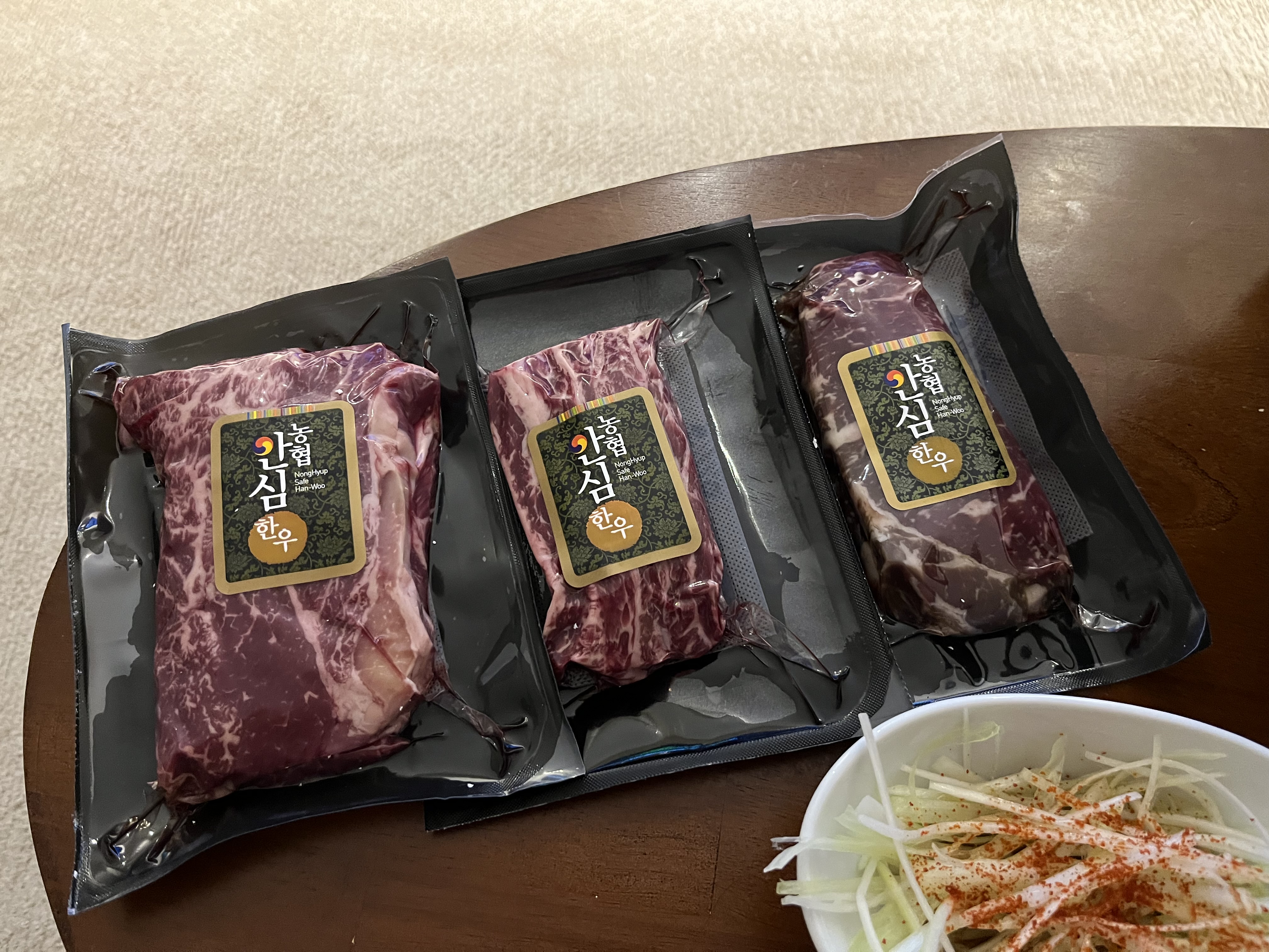 선물 받은 소고기 세트다.
