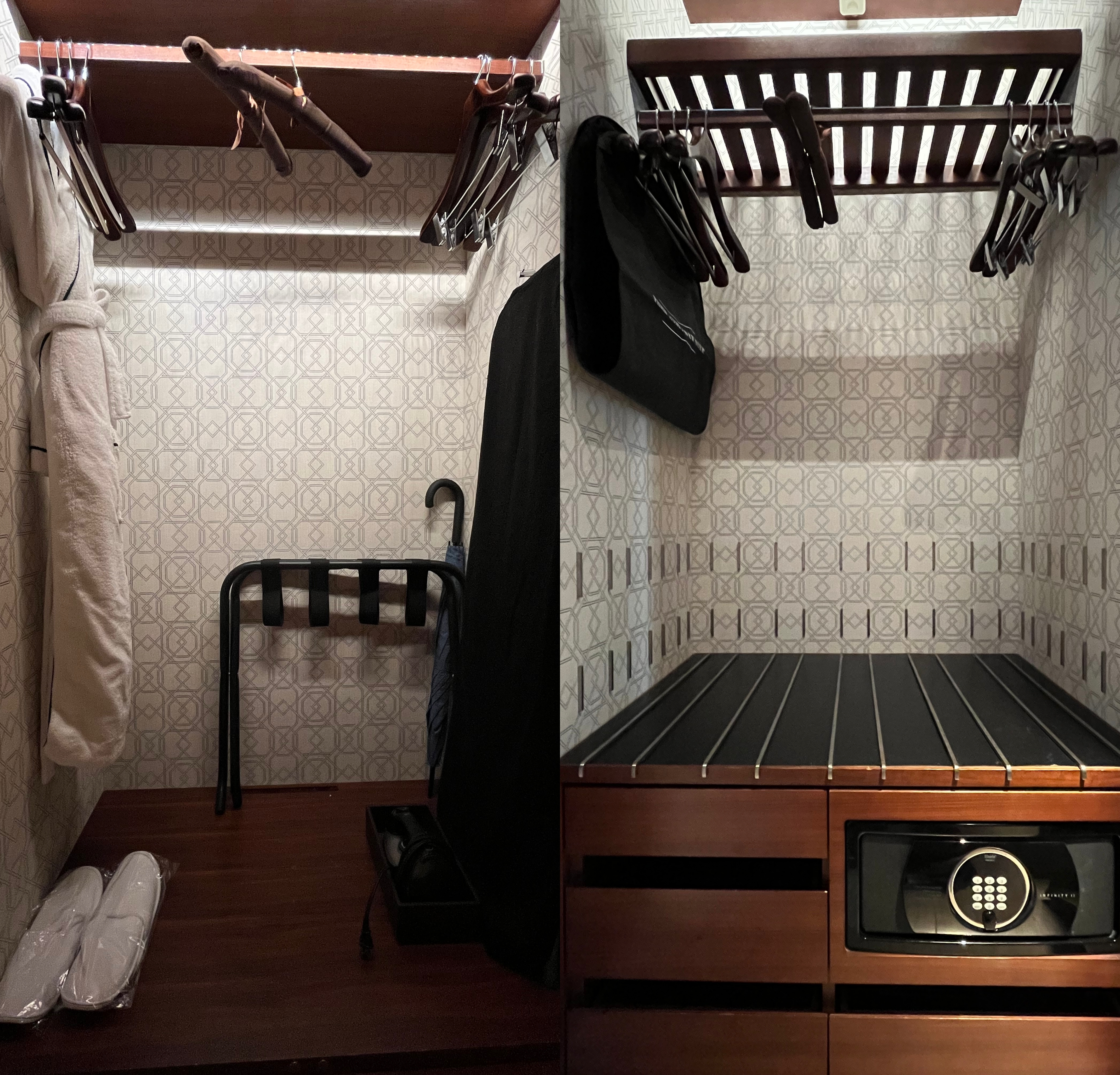 옷걸이랑 우산, 금고, 슬리퍼 등등 필요한 건 다 구비되어 있다.