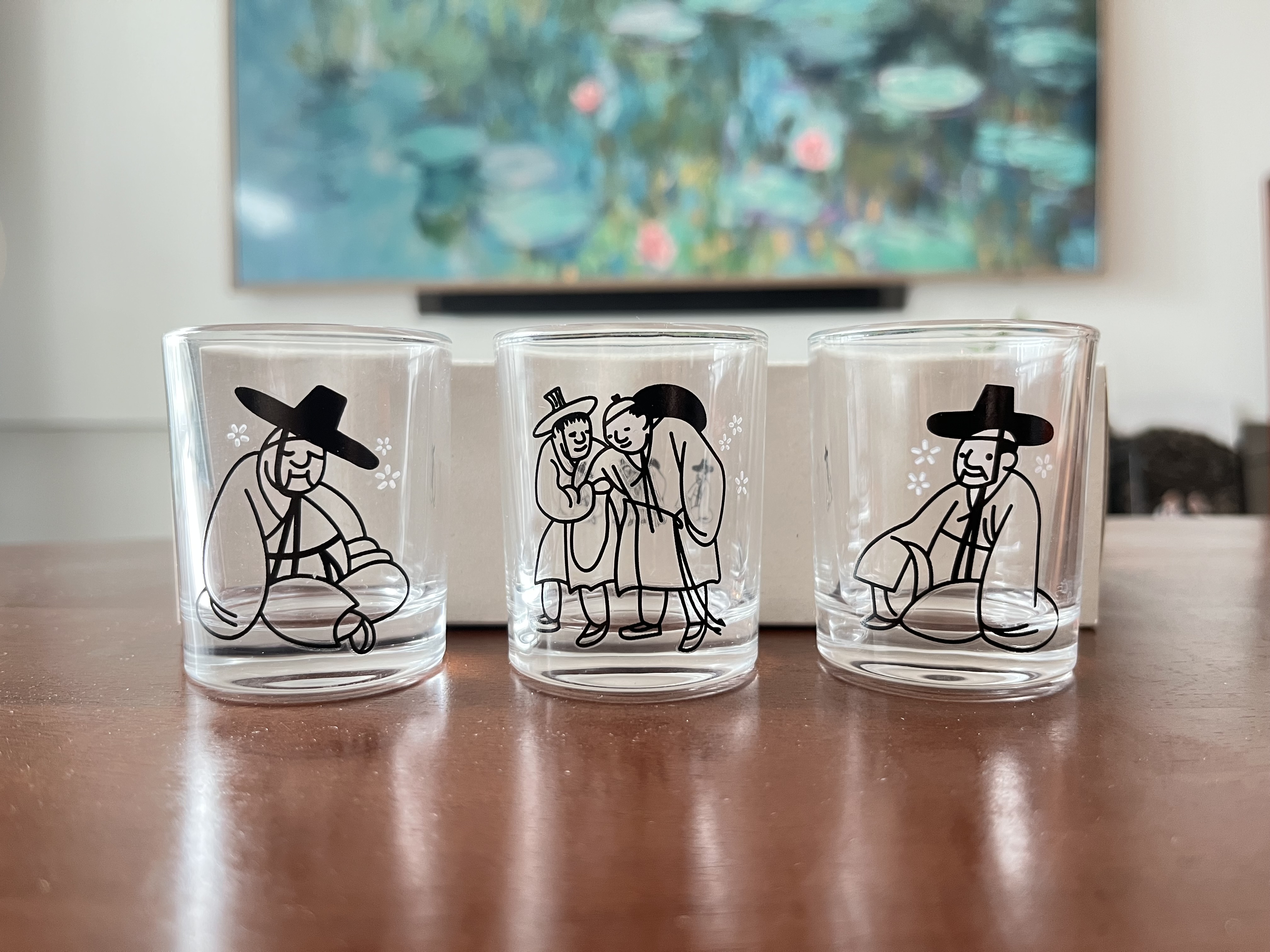 세 가지 잔에 그려진 세 가지 모습이 각각 흥미롭다.