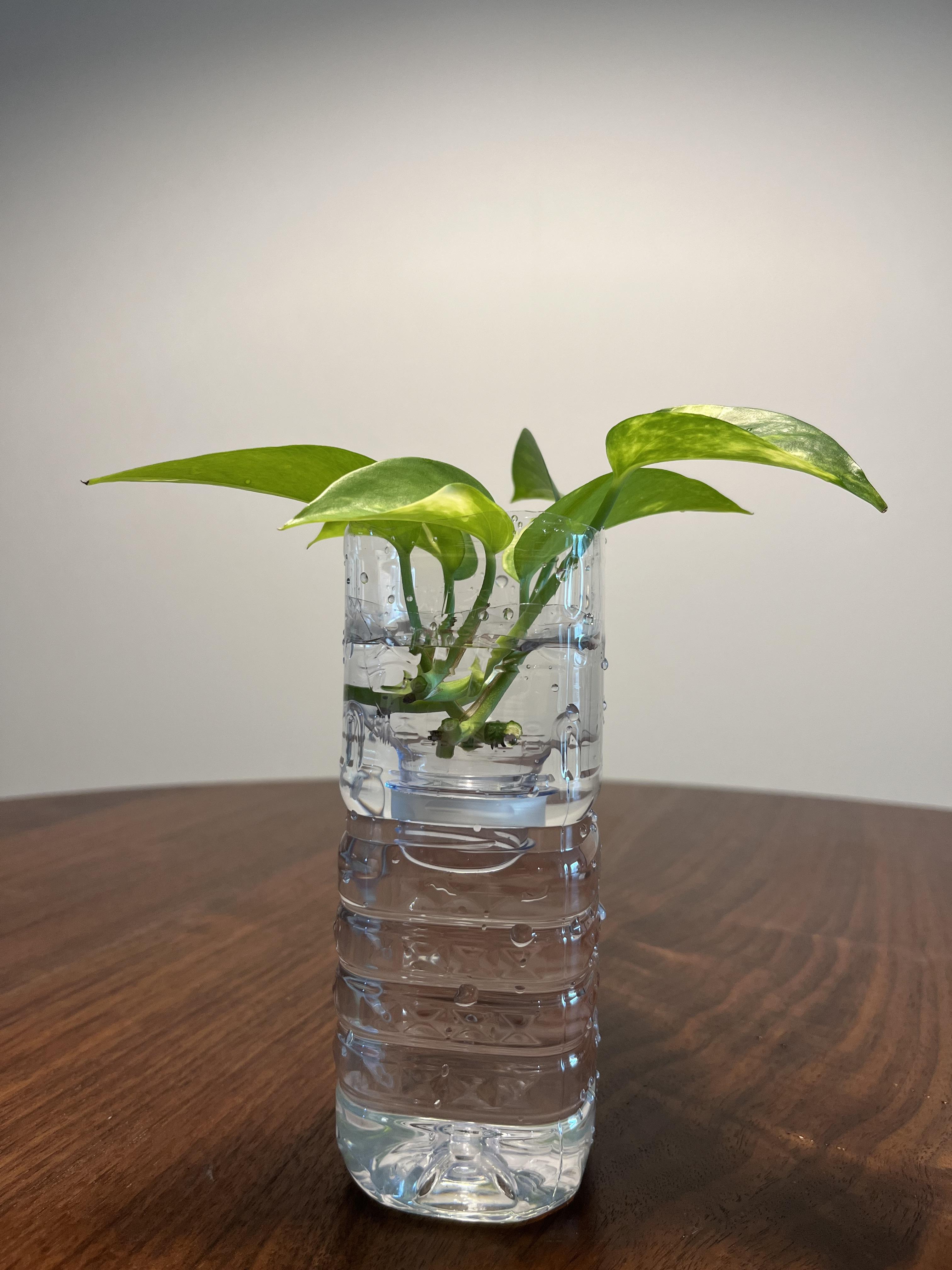 이제 이 녀석들은 잘린 부분에서 뿌리가 자라날 때까지 물에서 기른다.