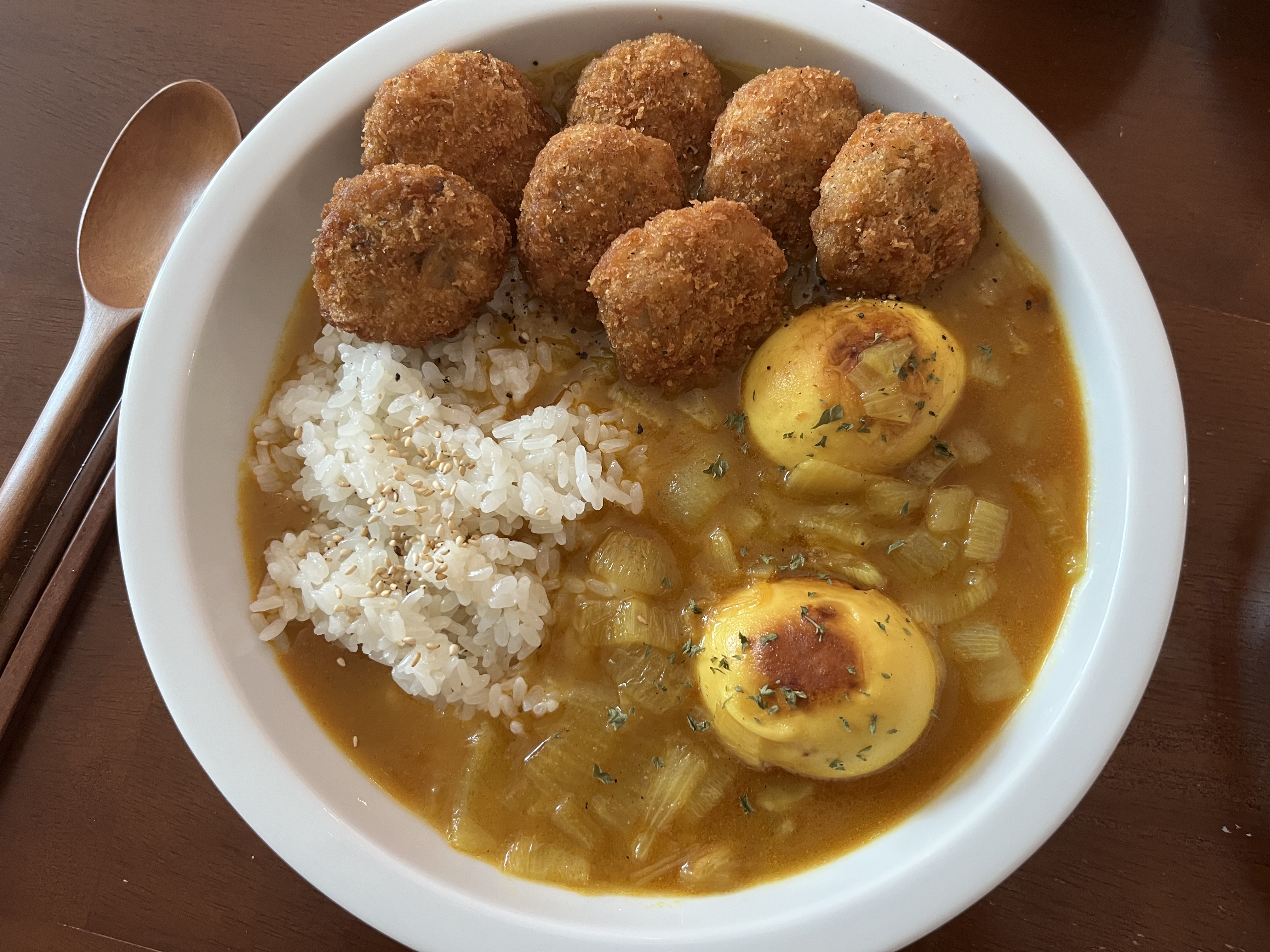 갓 지은 따끈한 밥에 맛있는 카레를 듬뿍 올려준다.