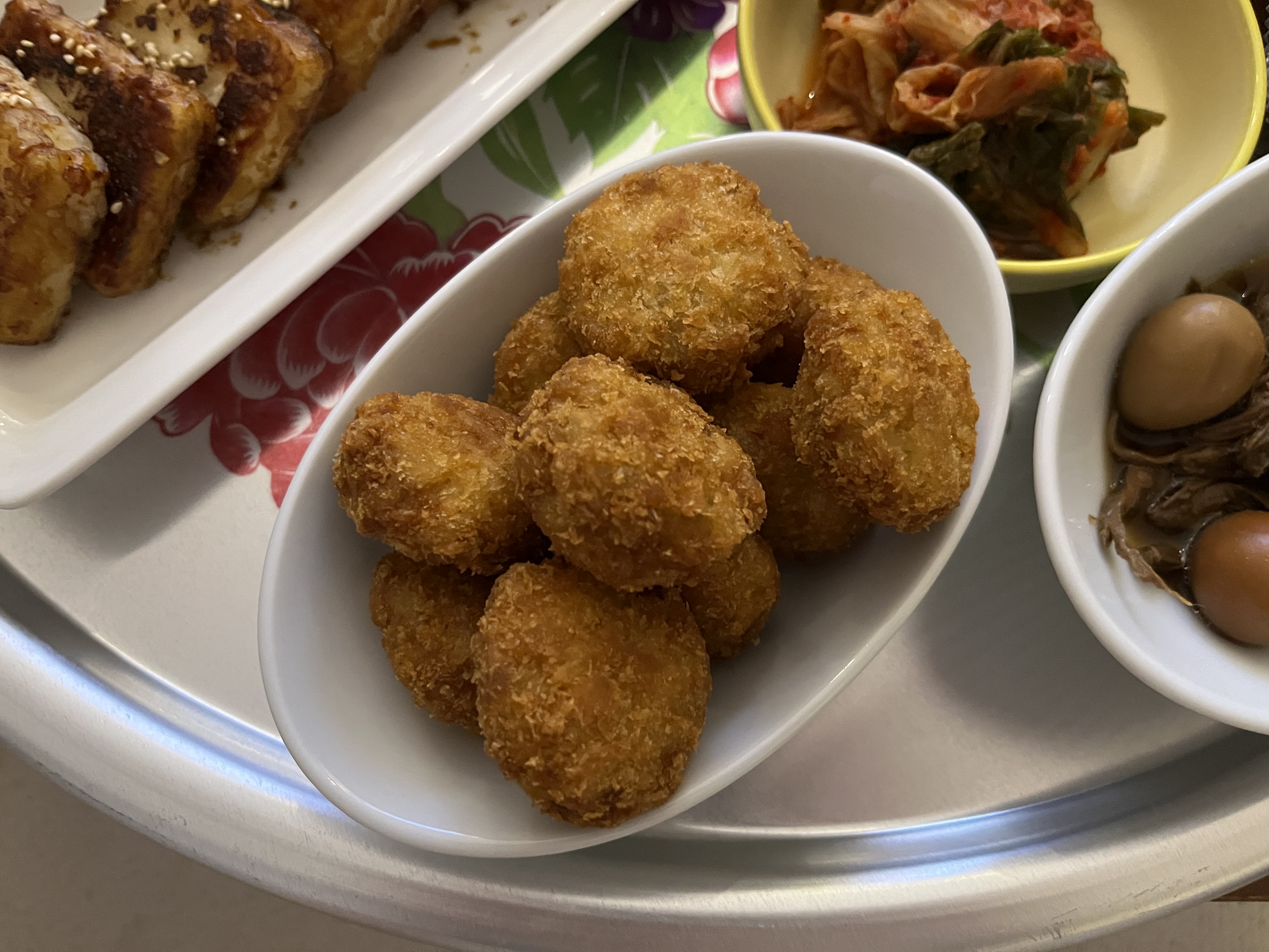 안은 두부의 촉촉하고 탱글한 식감이고, 겉은 바삭하고 짭짤하다.