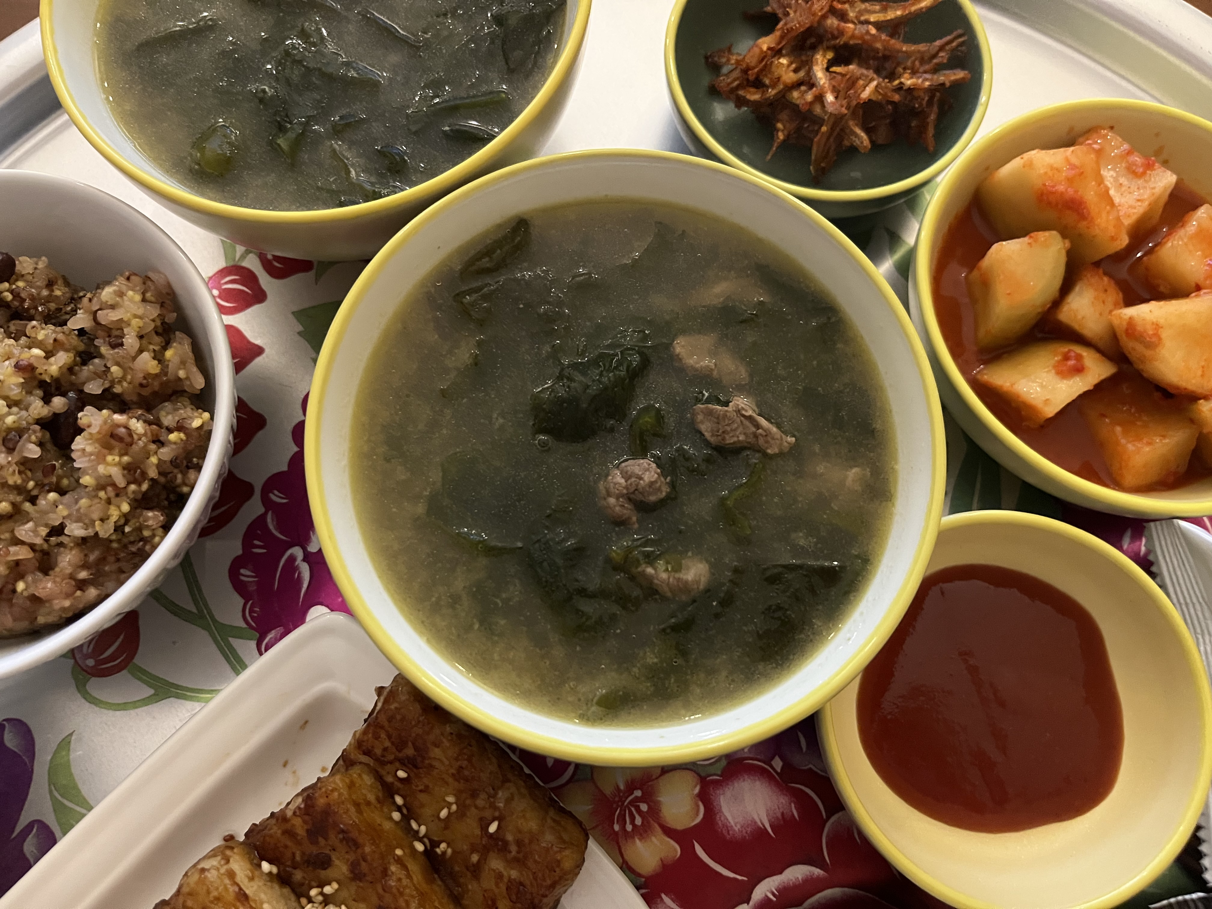 맛있는 미역국 냄새와 이것저것 반찬 익어가는 냄새가 집안을 가득 채운다.