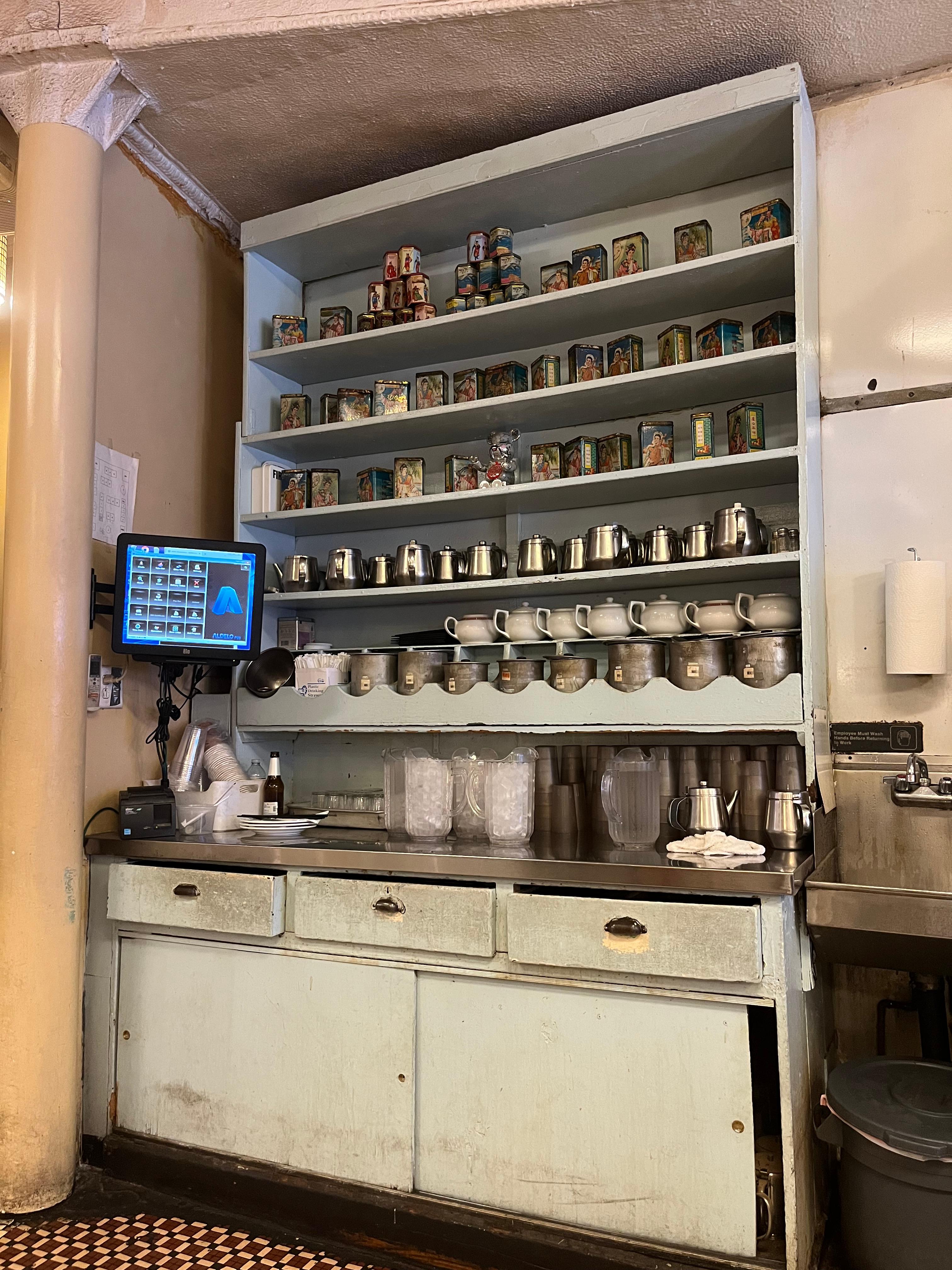 가게 한쪽의 진열장에는 여러 가지 차와 주전자가 자리하고 있다.