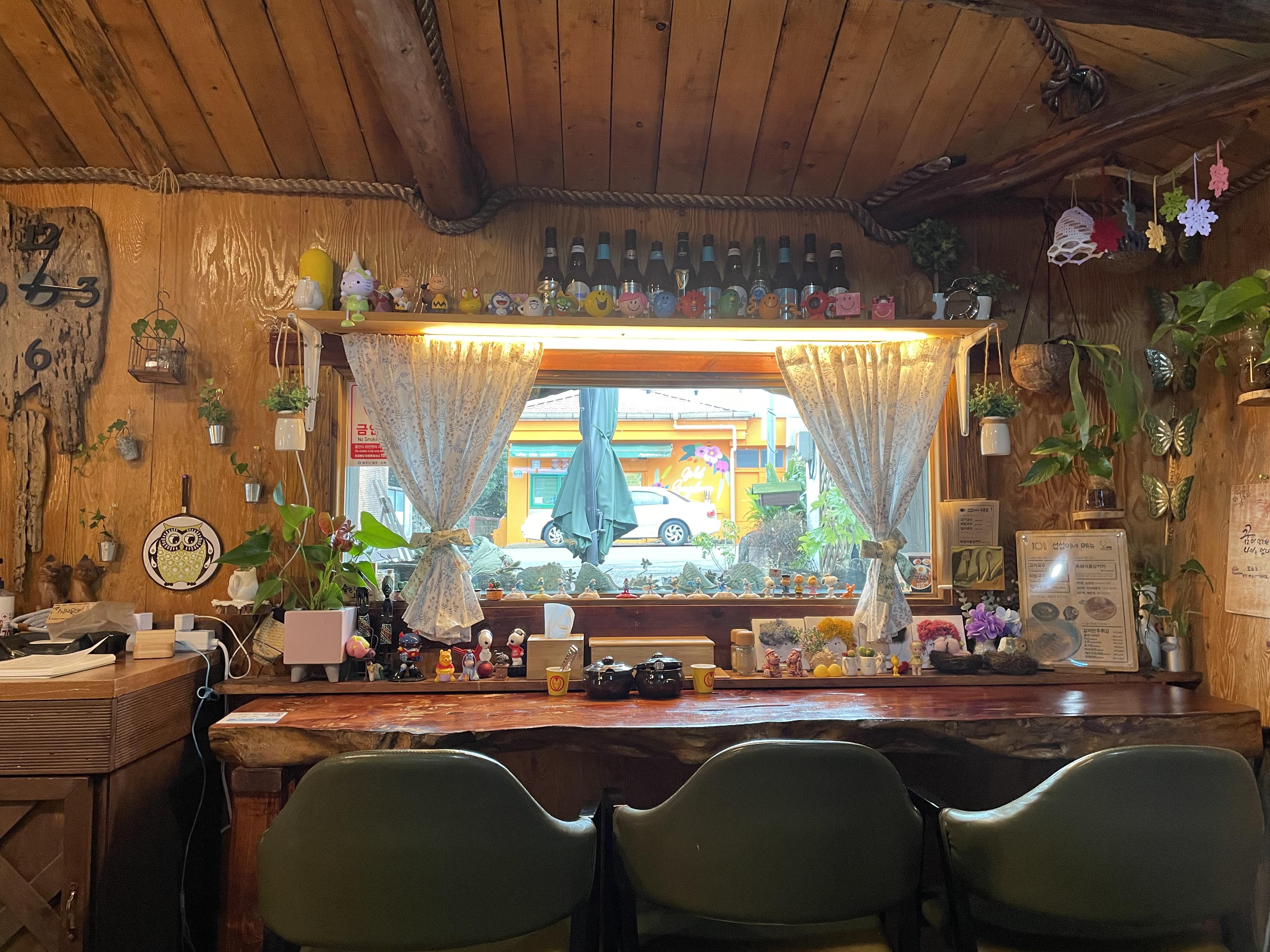 특히 저 창가 자리는 장식도, 앞으로 보이는 풍경도, 테이블도 너무 예뻤다.