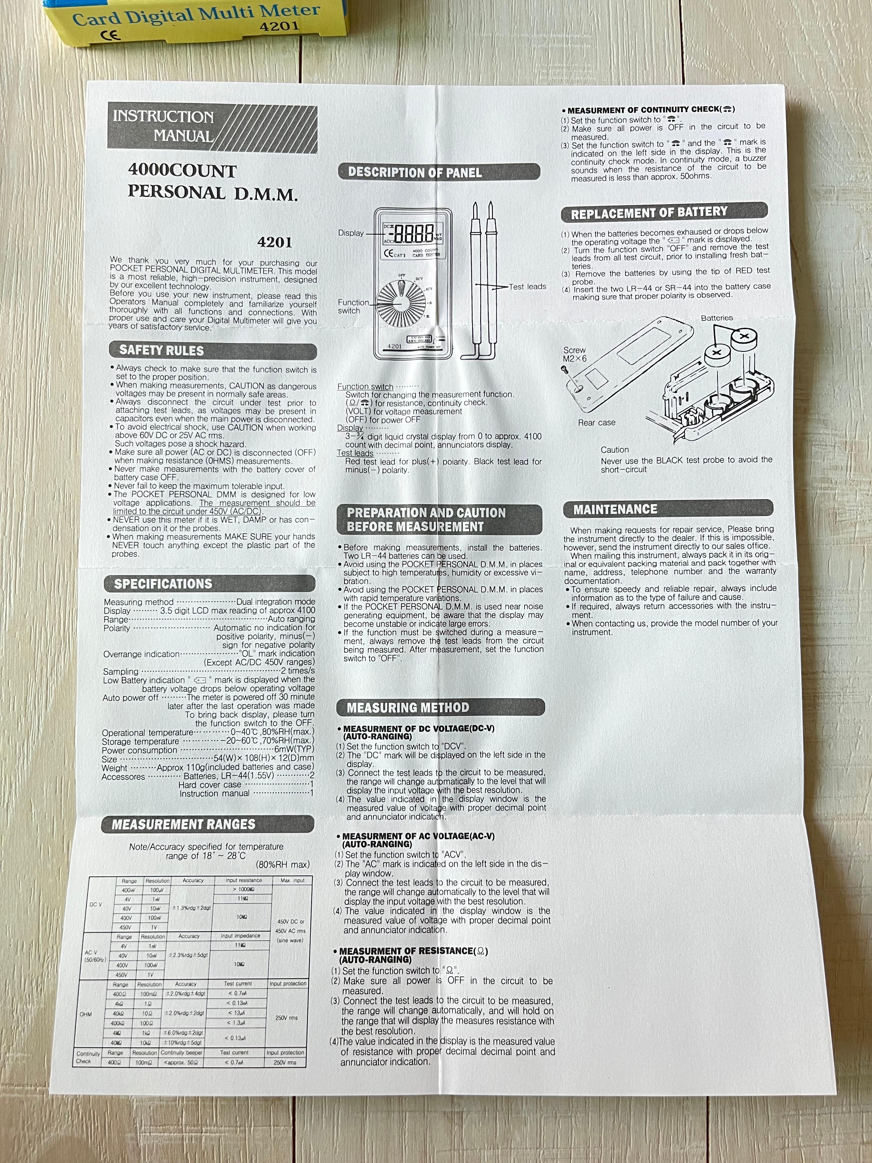 많은 기능과 좋은 성능보단 전압, 저항, 통전 테스트 되면 될 것 같다.