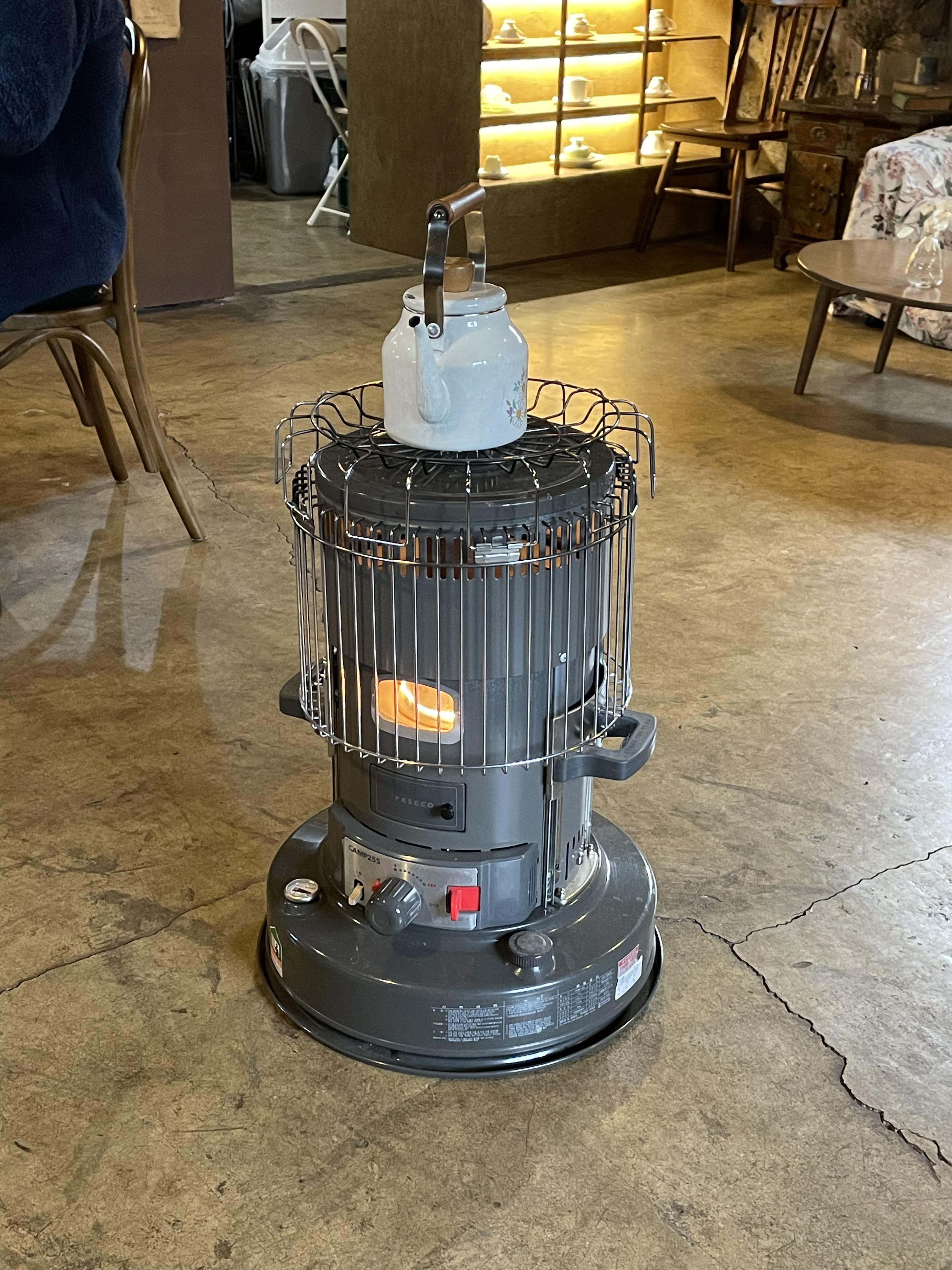 카페 가운데에는 석유난로가 있다.