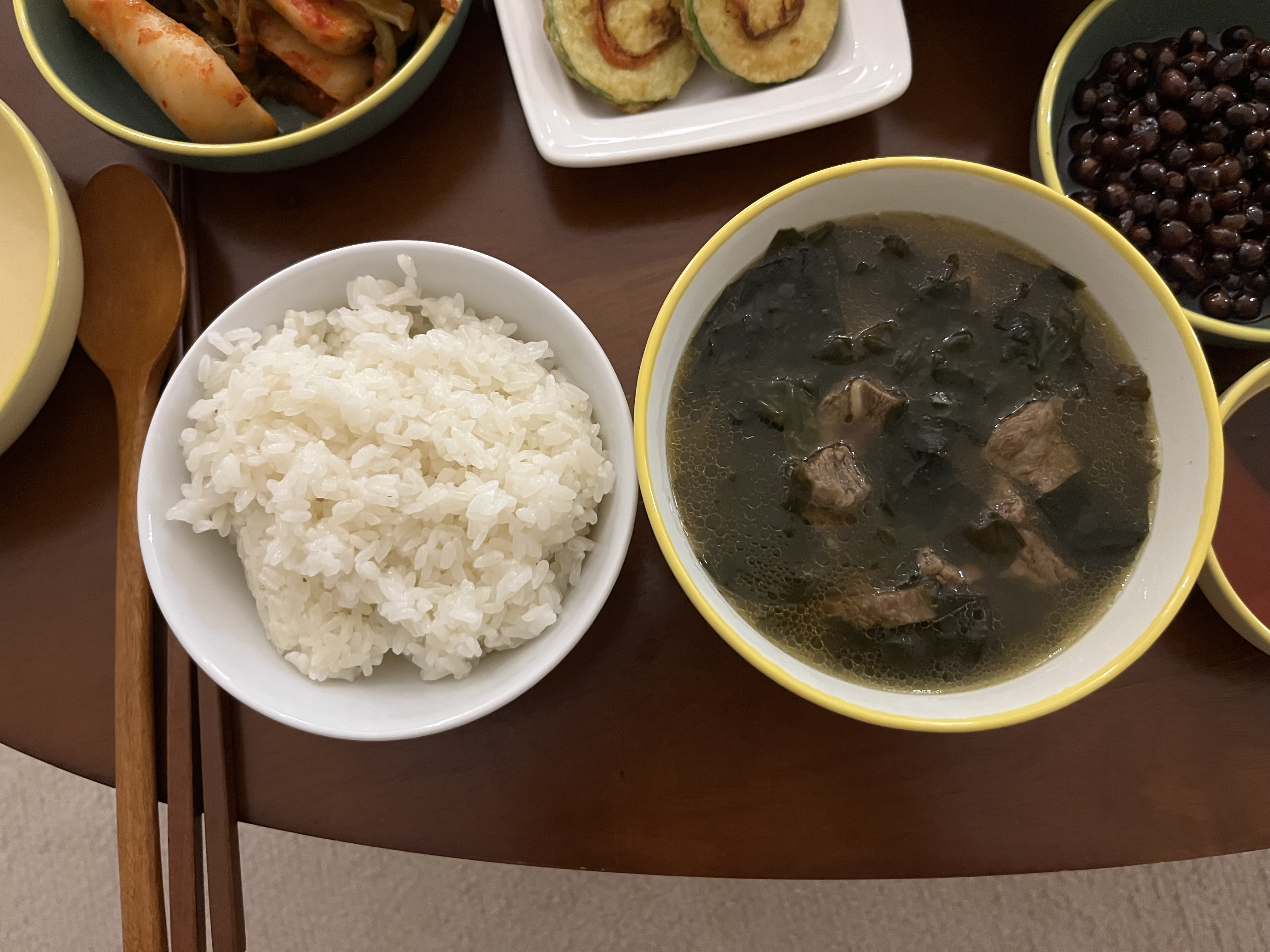 미역국도 재료들과 한참 끓여내어 깊은 맛이 느껴진다.