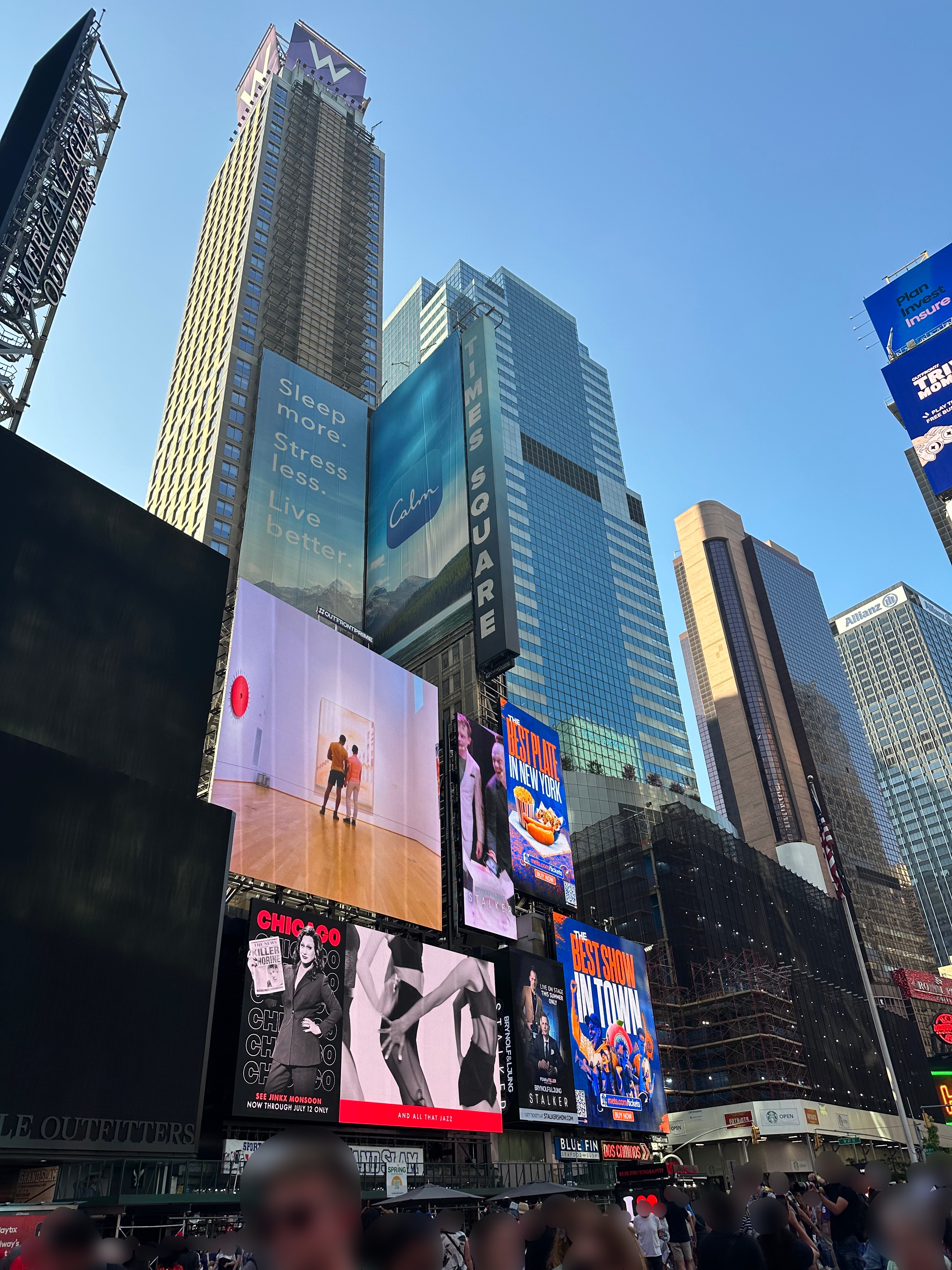 2024.07.10. 오늘 우리의 메인이벤트 중 하나.브로드웨이 오리지널 뮤지컬 보기.타임스 스퀘어의 멋진 모습을 가슴에 담고 바로 옆 극장으로 향한다. 토론토 & 뉴욕 여행 : 타임스 스퀘어2024.07.10. 맨