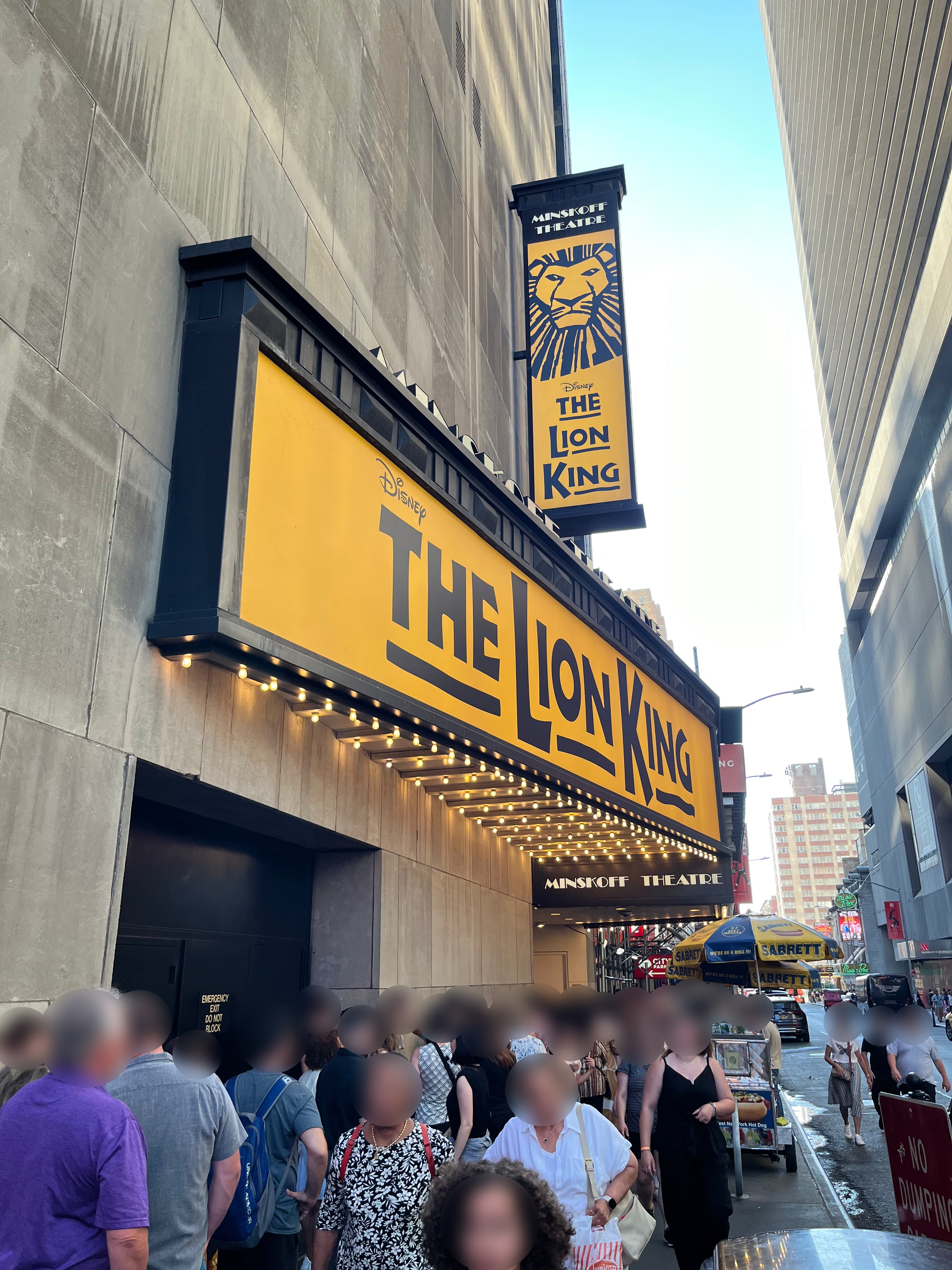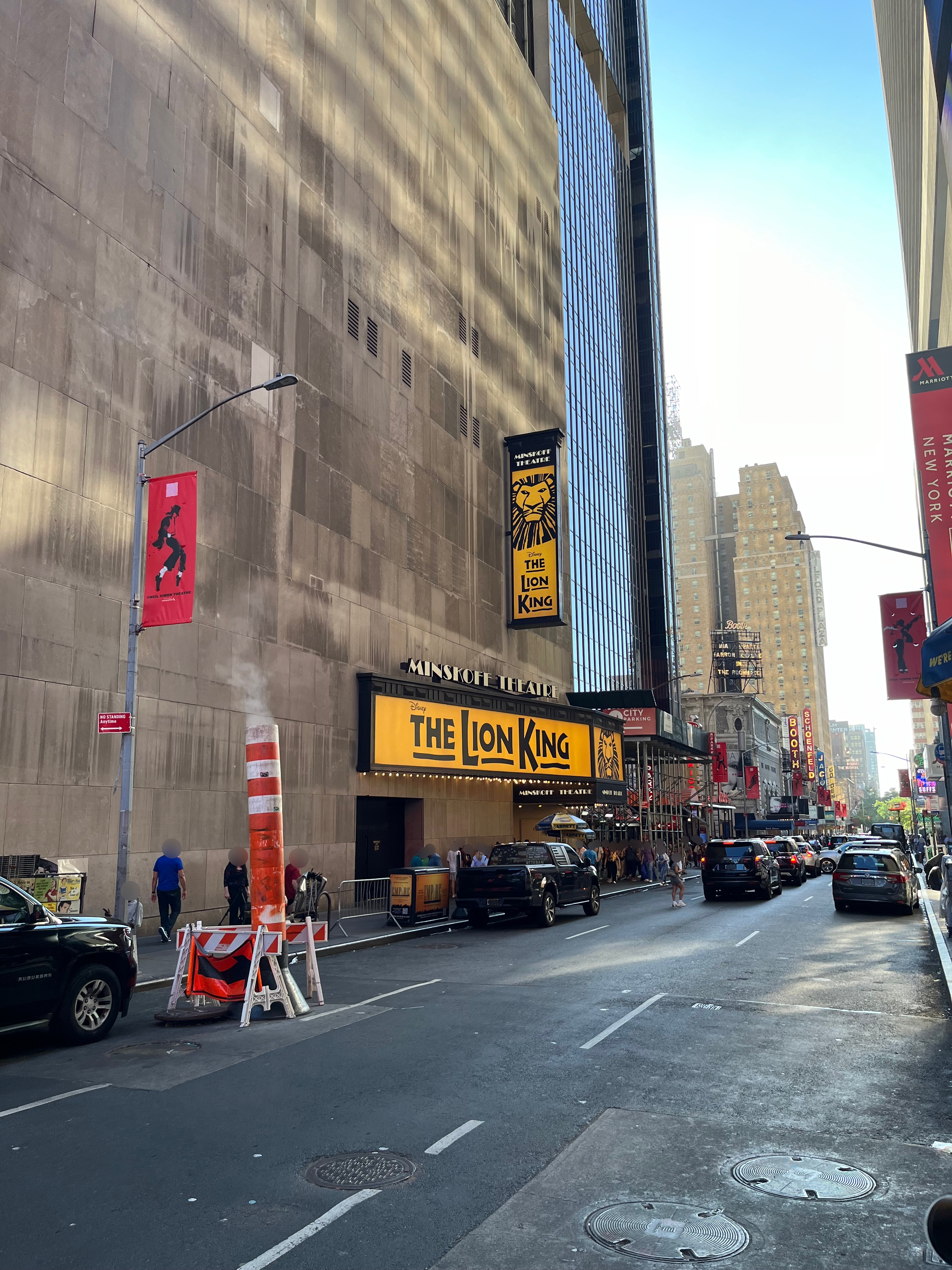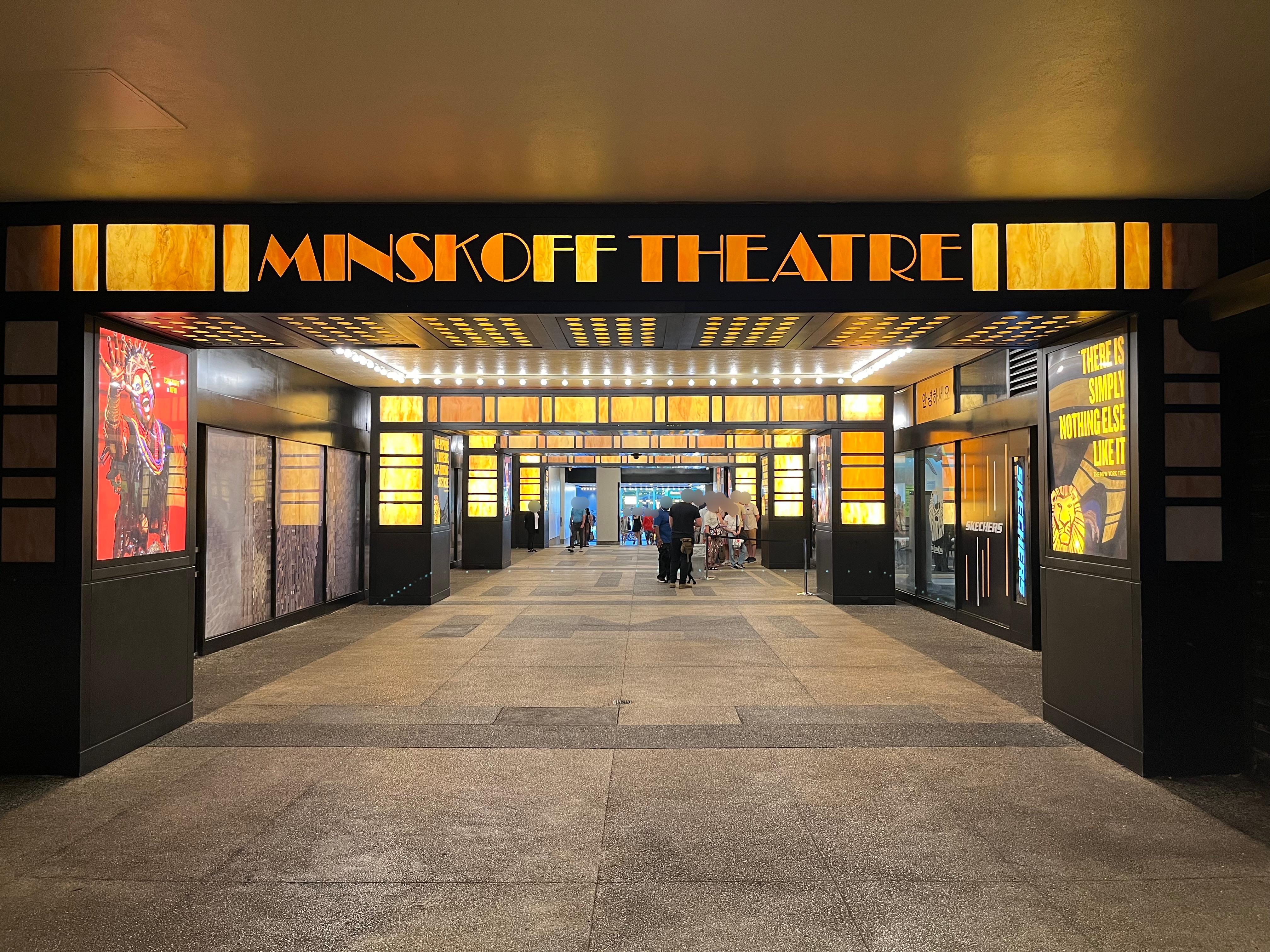 정말 교차로 건너편에 보면 보이는 노란색 민스코프 극장(Minskoff Theatre)의 간판.
