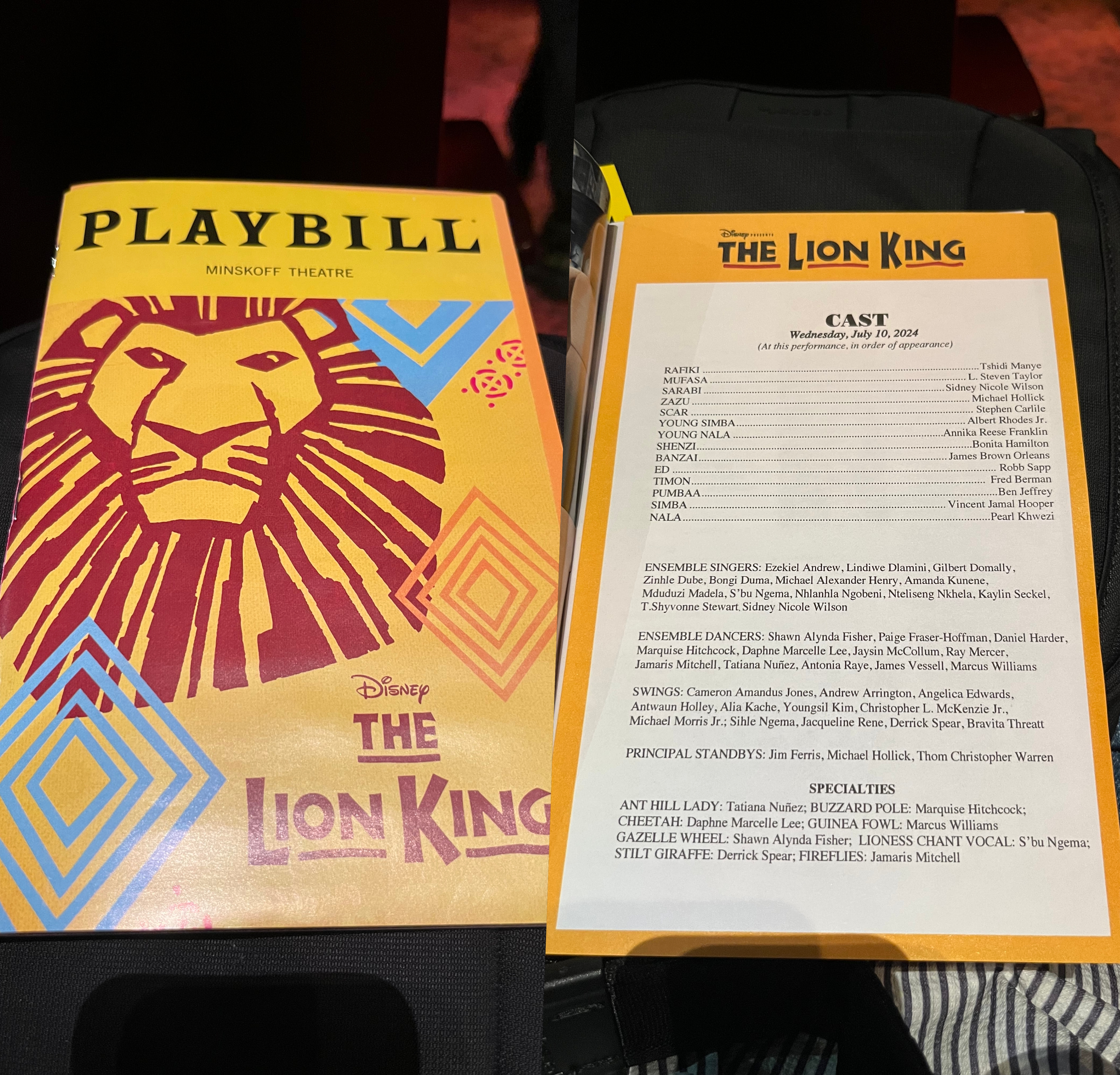 라이온킹 안내 책자도 하나씩 집어왔다.