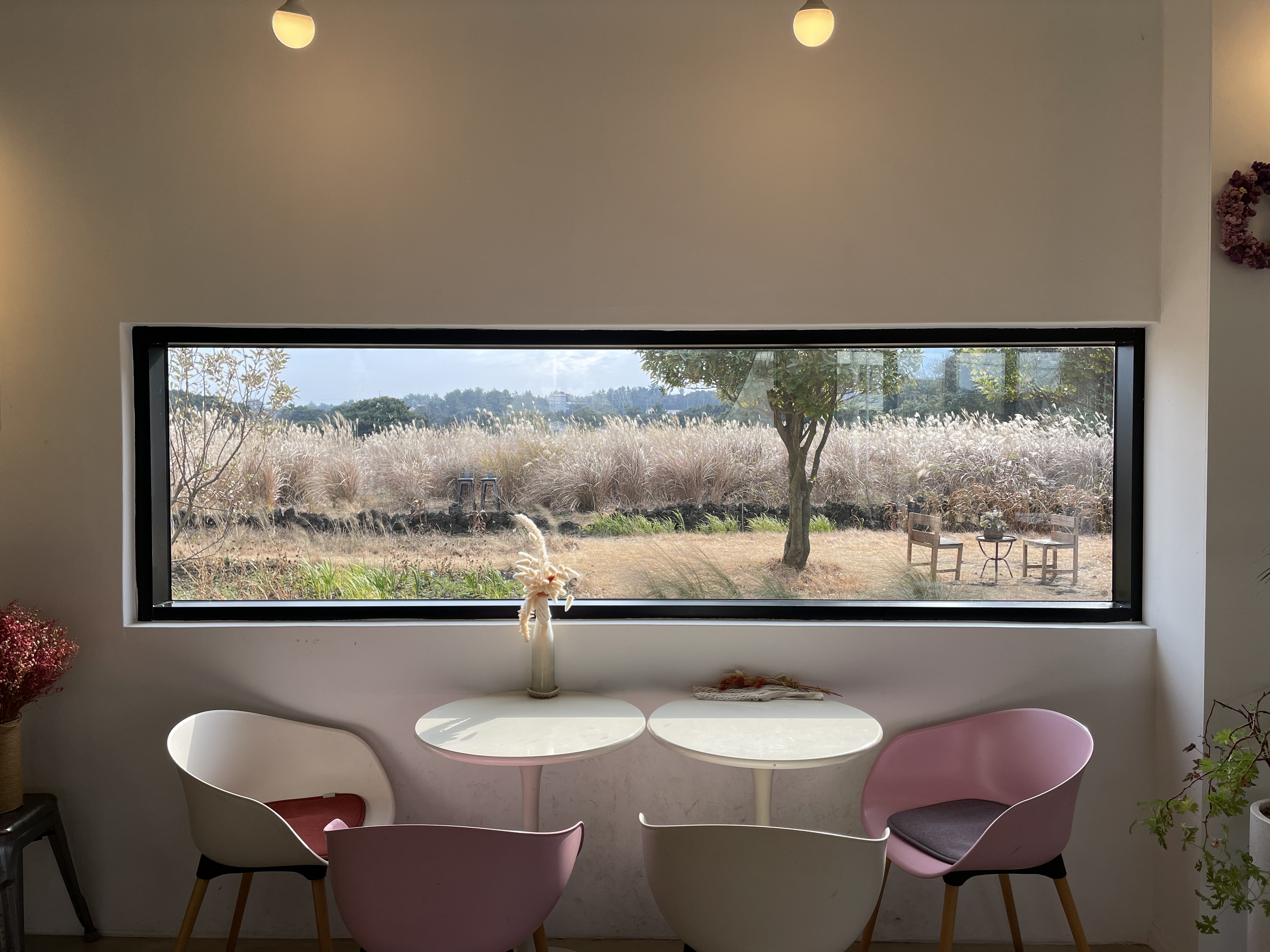 창 밖으로 보이는 풍경이 너무 예쁘다.