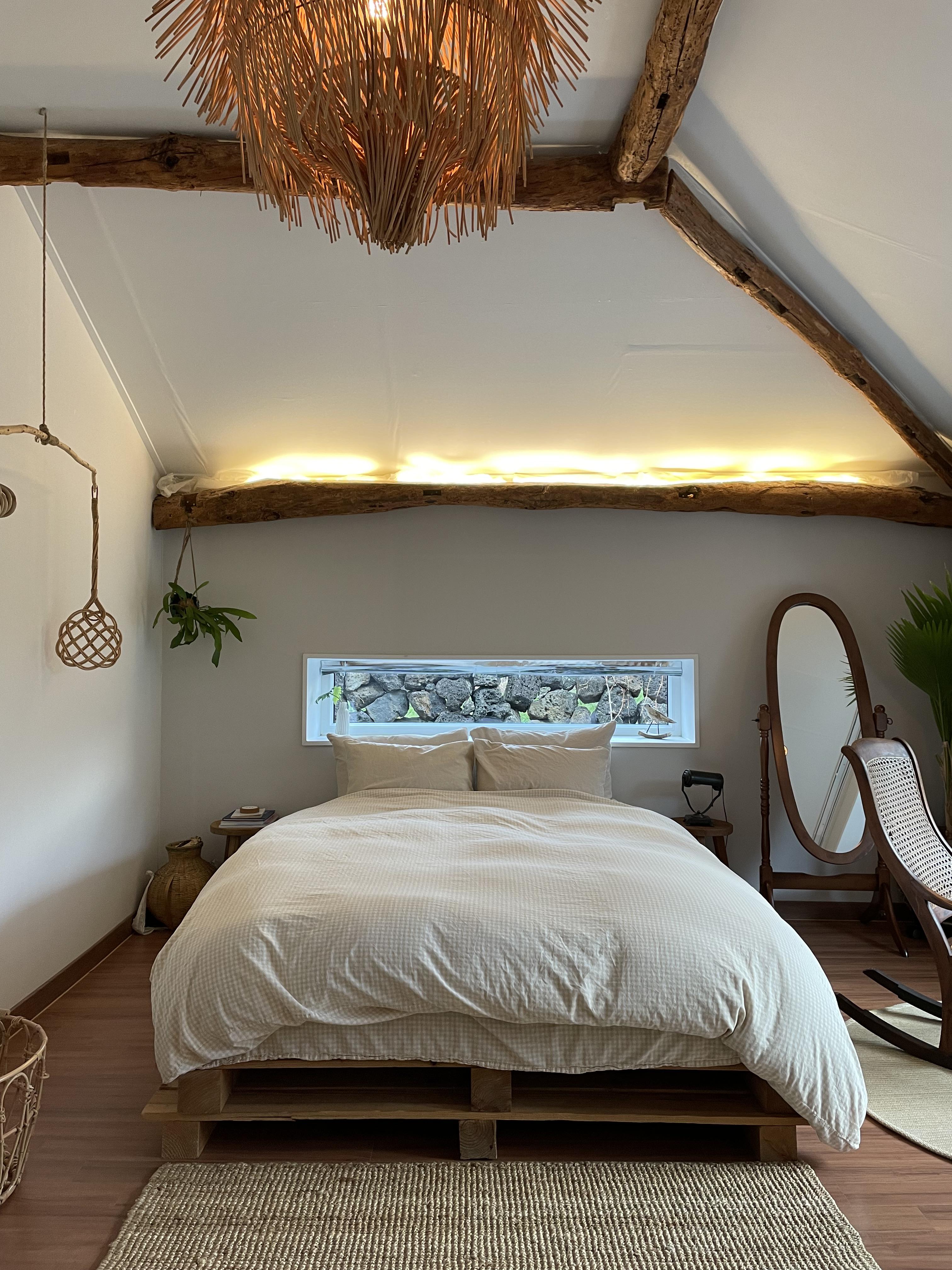 침대도, 바닥도, 가구와 장식들도 나무로 되어있다.