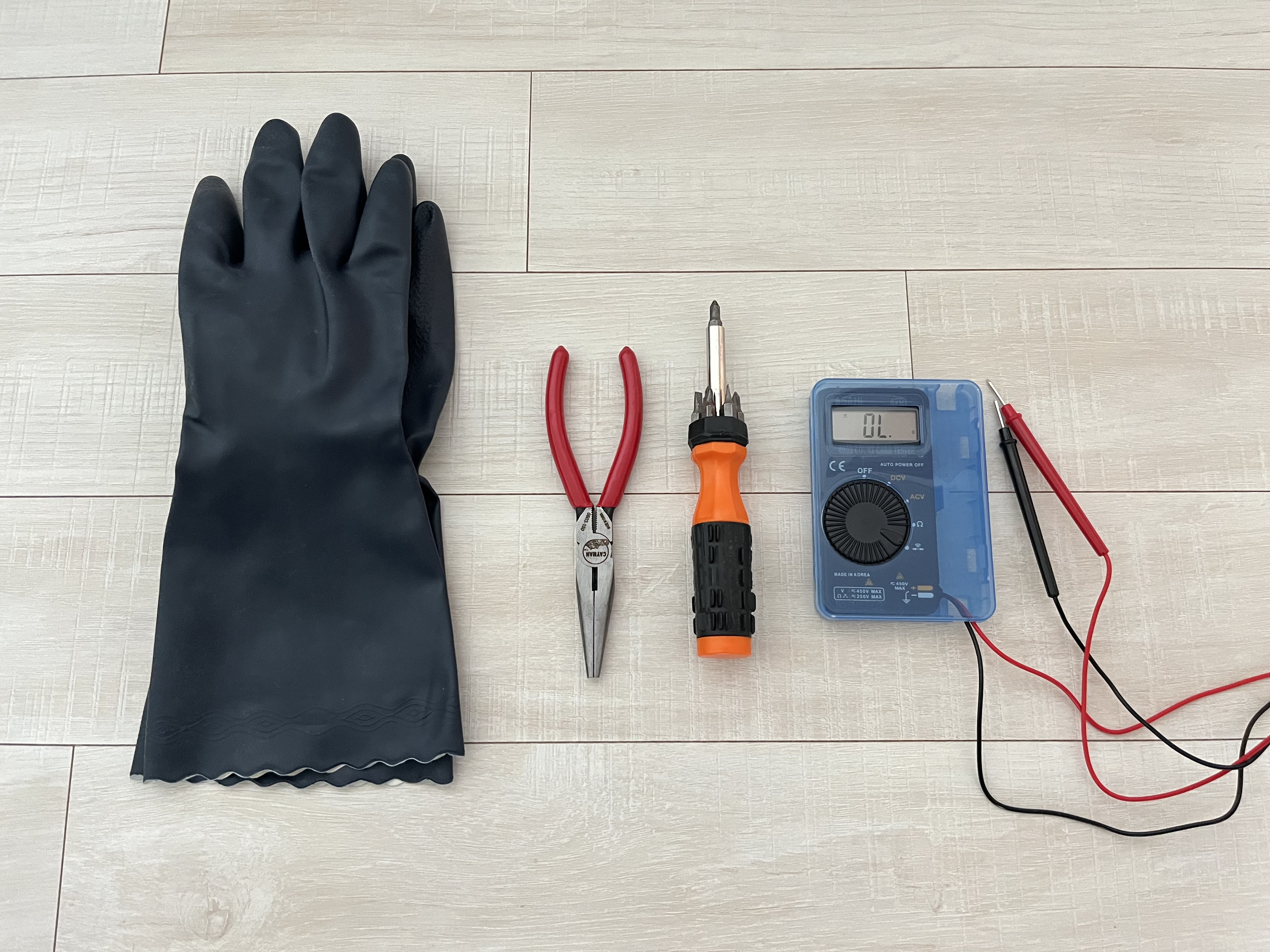 전기가 안 들어오나 싶어 차단기를 올리고 전선에도 멀티미터로 테스트.