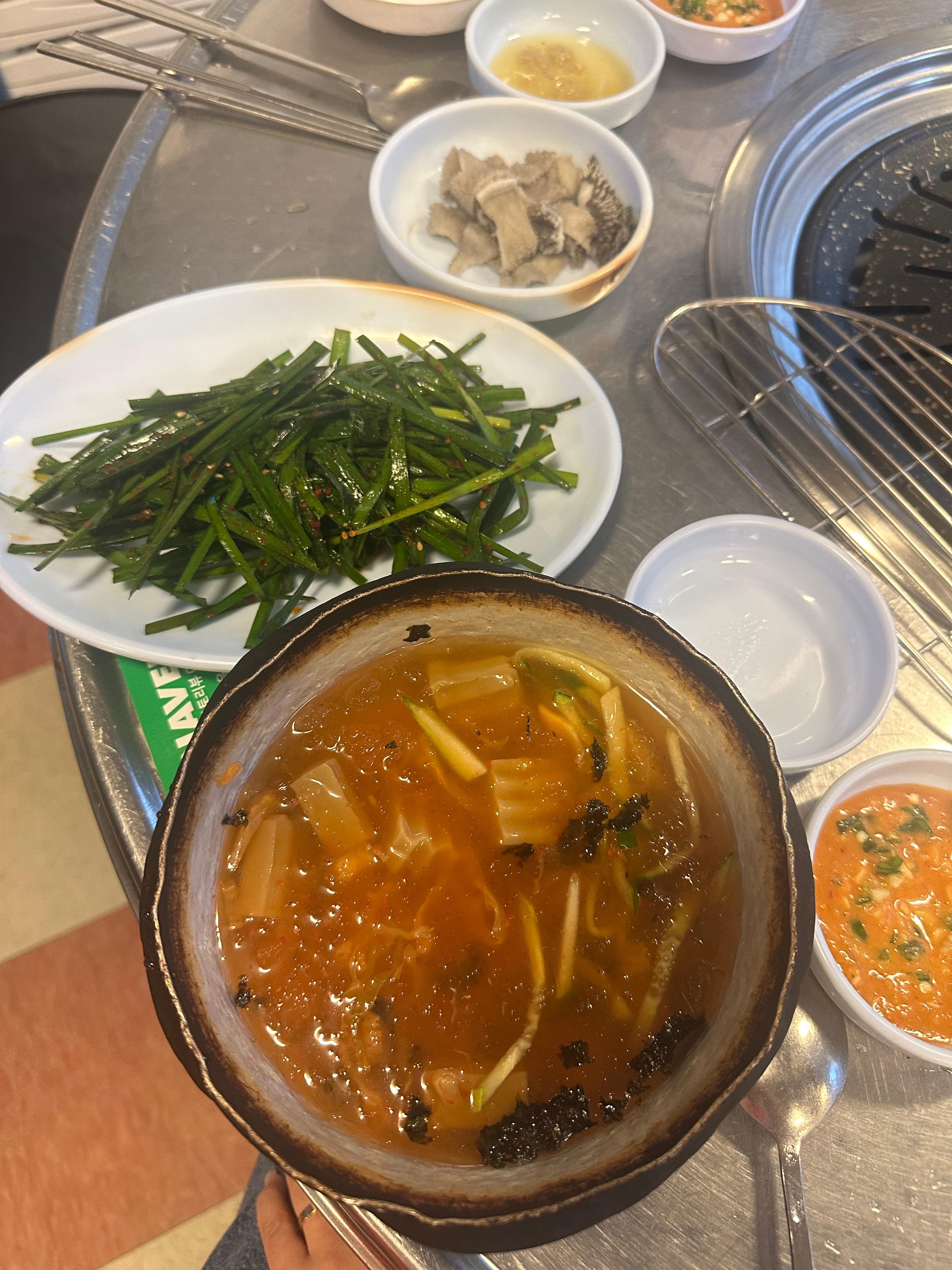 새콤매콤 양념된 부추를 구우면 단맛이 살짝 올라와 곱창이랑 참 잘 어울린다.