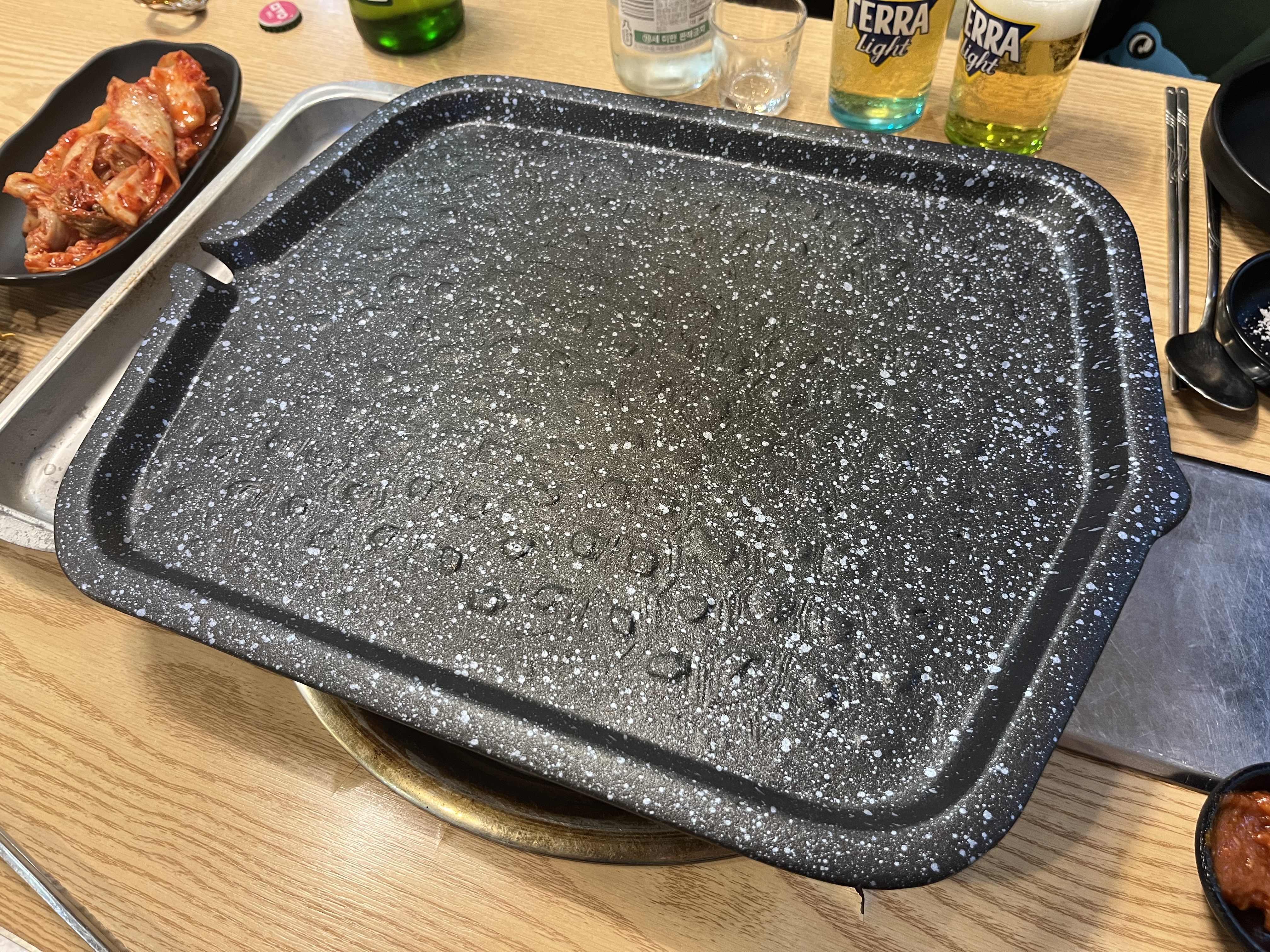 이곳의 불판은 두툼한 돌판이다. 철판인가?