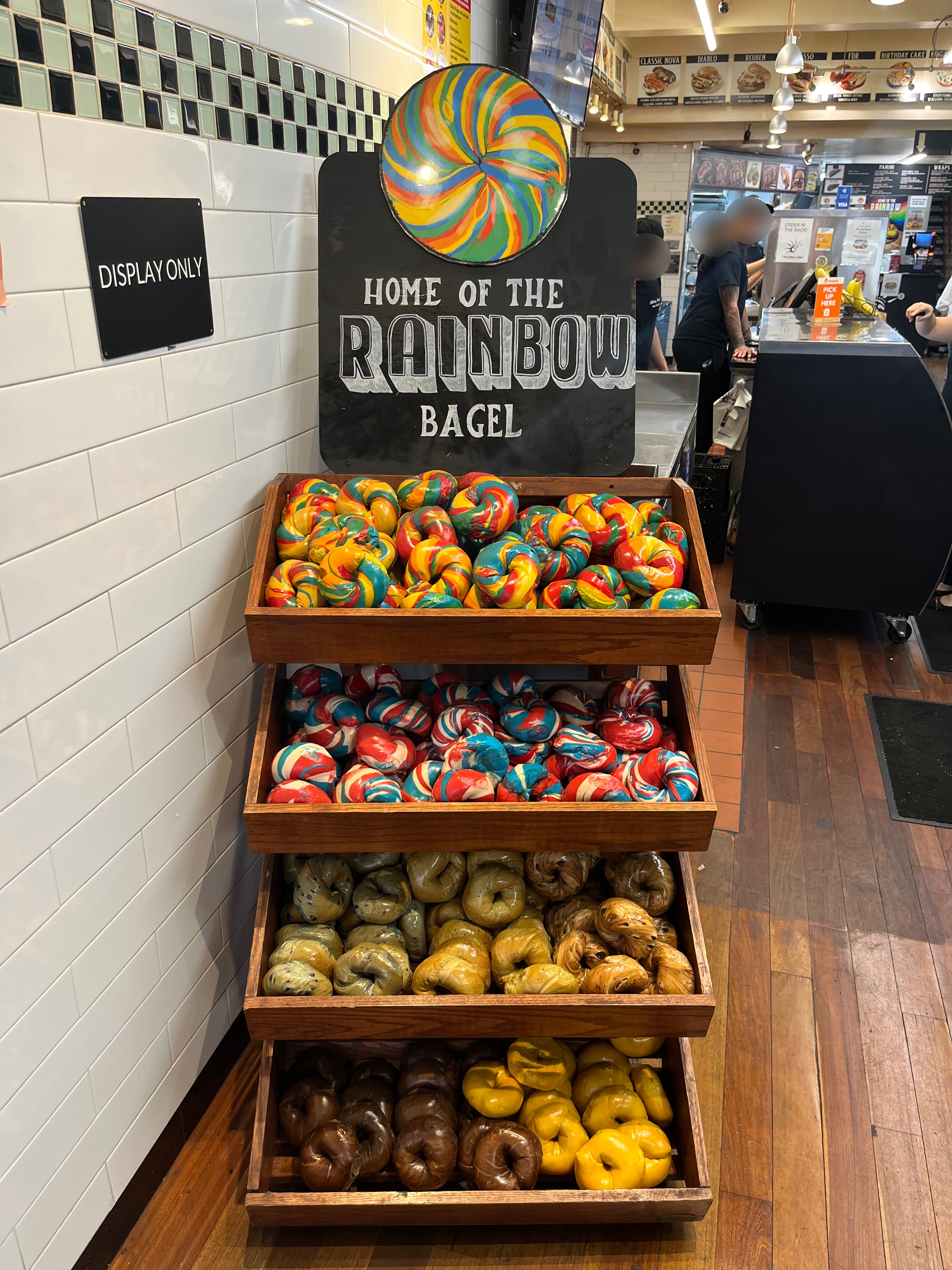 입구에는 Home of the Rainbow Bagle이라는 문구와 함께 형형색색의 베이글이 전시되어 있었다.