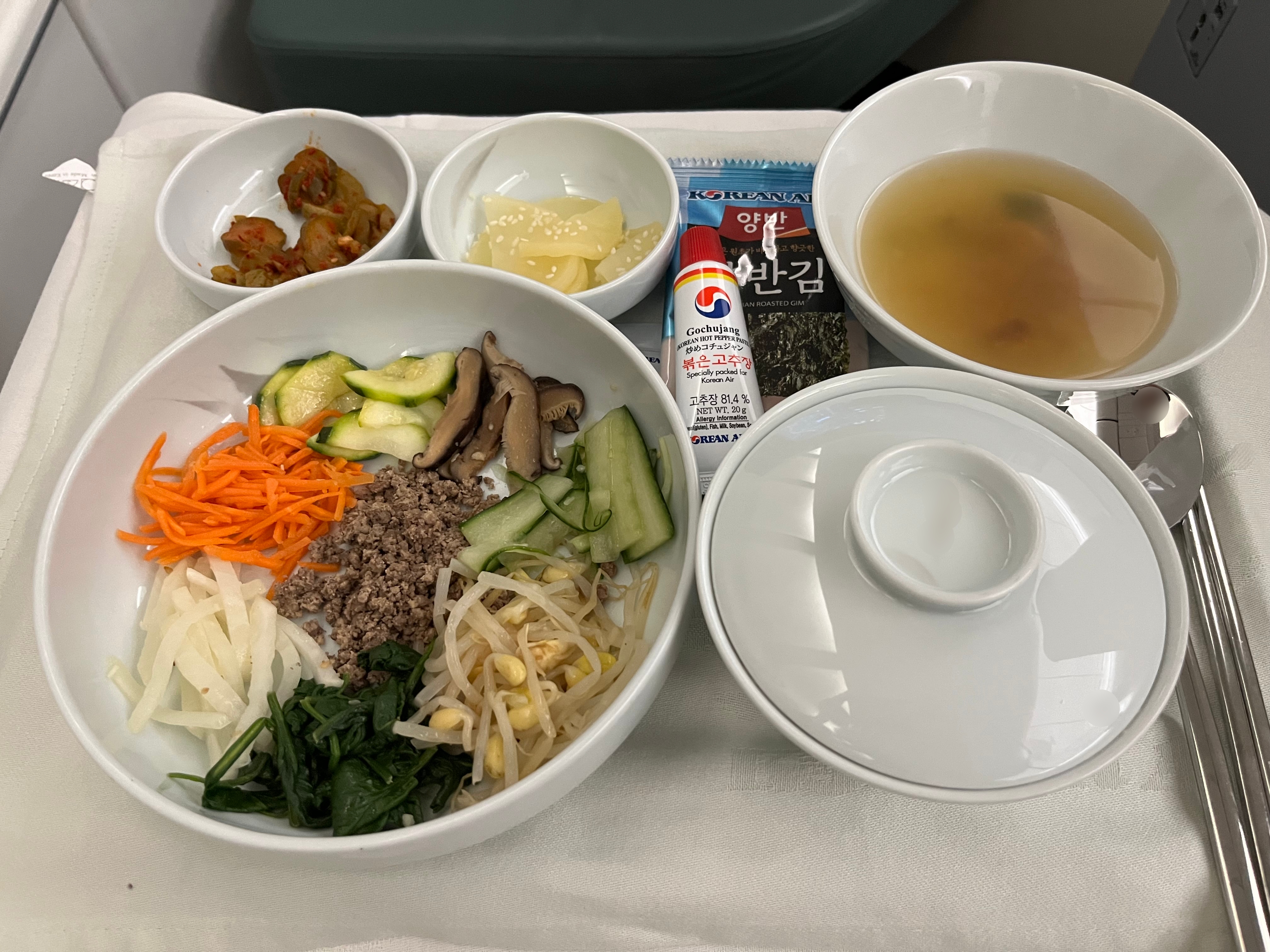 귀국 비행기의 필수메뉴인 비빔밥.