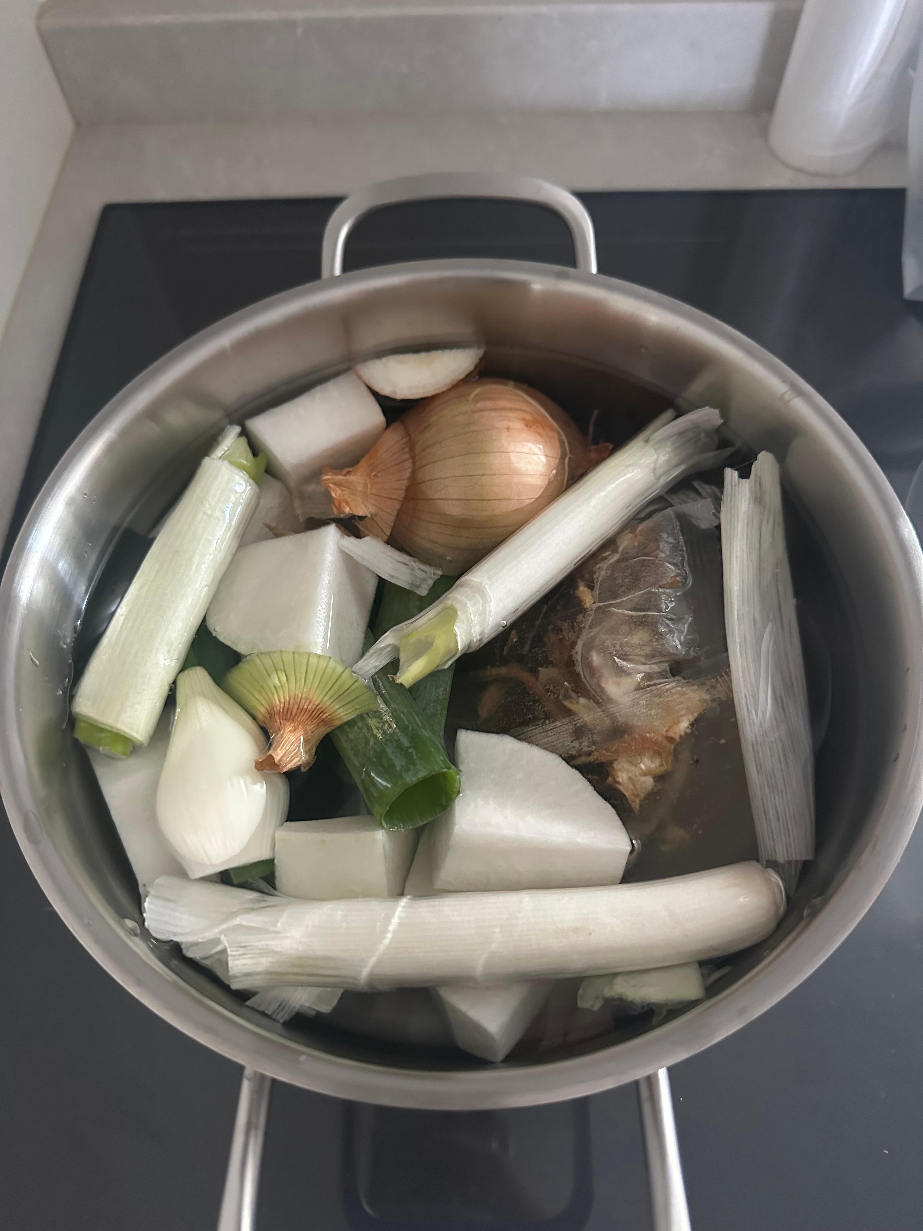 샤브샤브 국물의 베이스가 되는 재료들을 푸짐하게 준비했다.